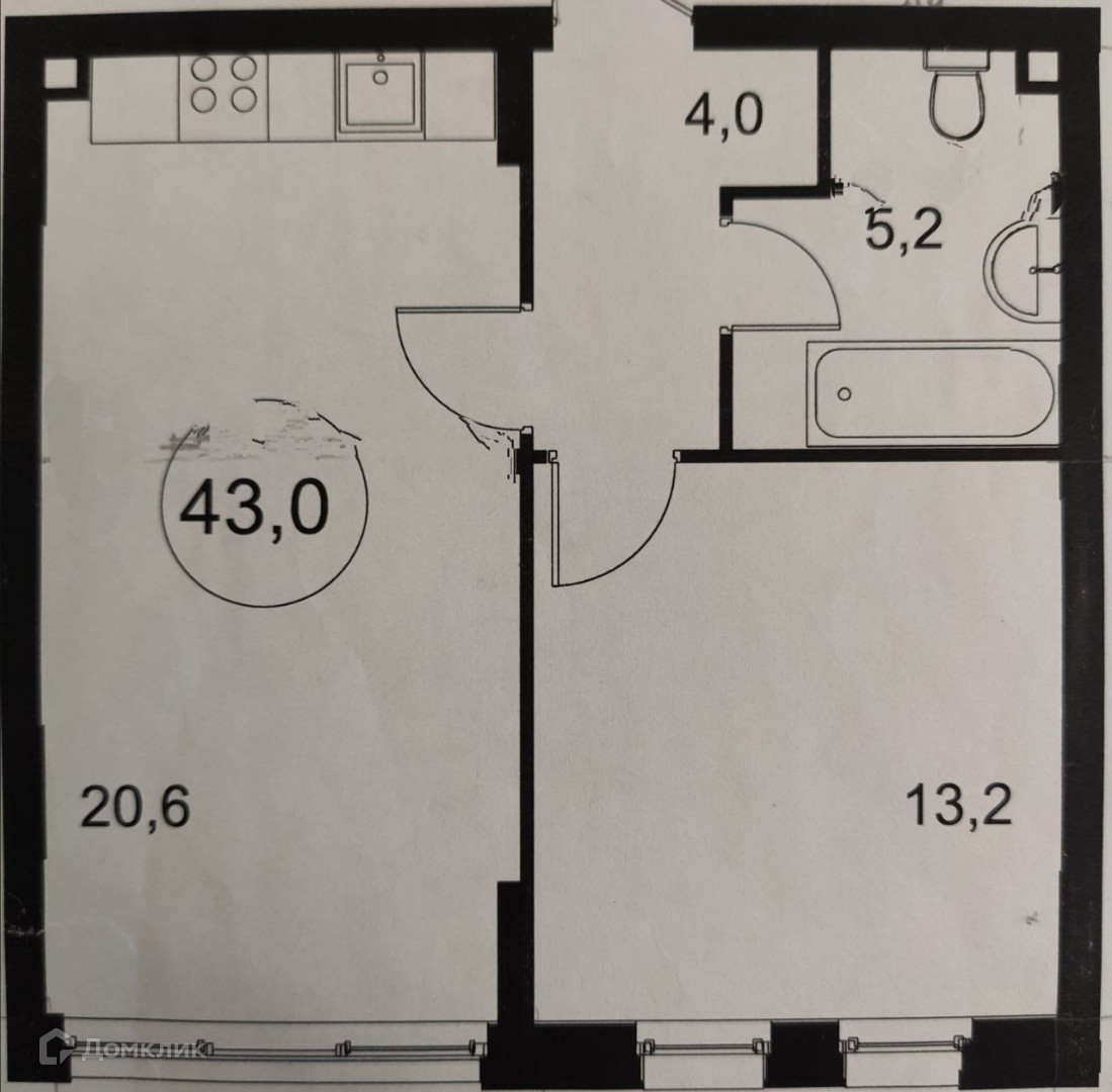Общая площадь 43 м2