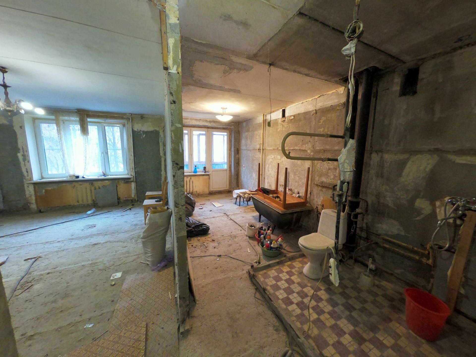Произведен демонтаж старых покрытий.