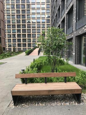Закрытый двор с детскими площадками , зоной для занятия спортом , летней террасой с шезлонгами  расположен на стилобате корпуса, выход  предусмотрен из входной группы.