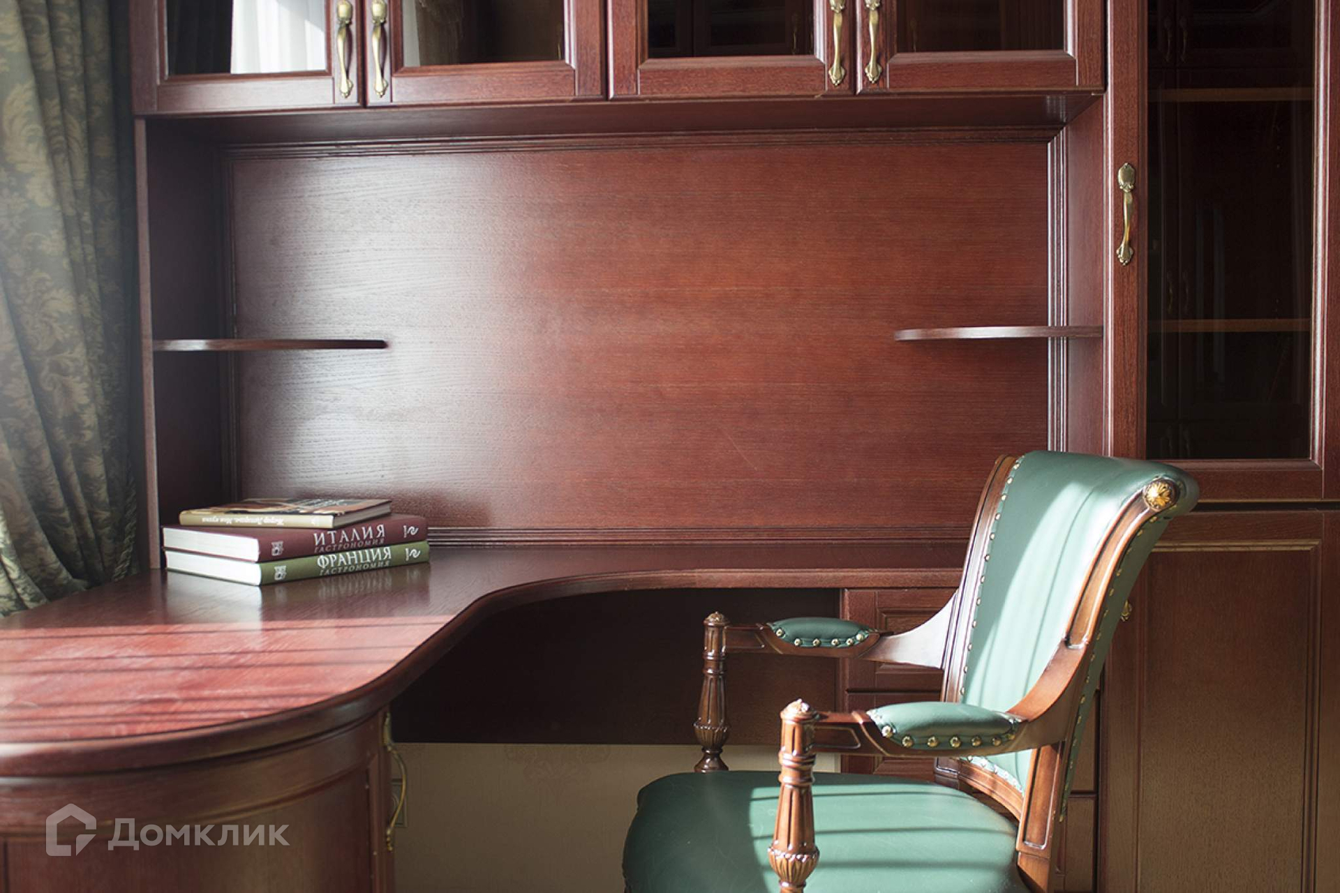 Рабочий кабинет с большой библиотекой, откуда открывается вид на корпуса Тимирязевской академии, зелень парка и гладь прудов.