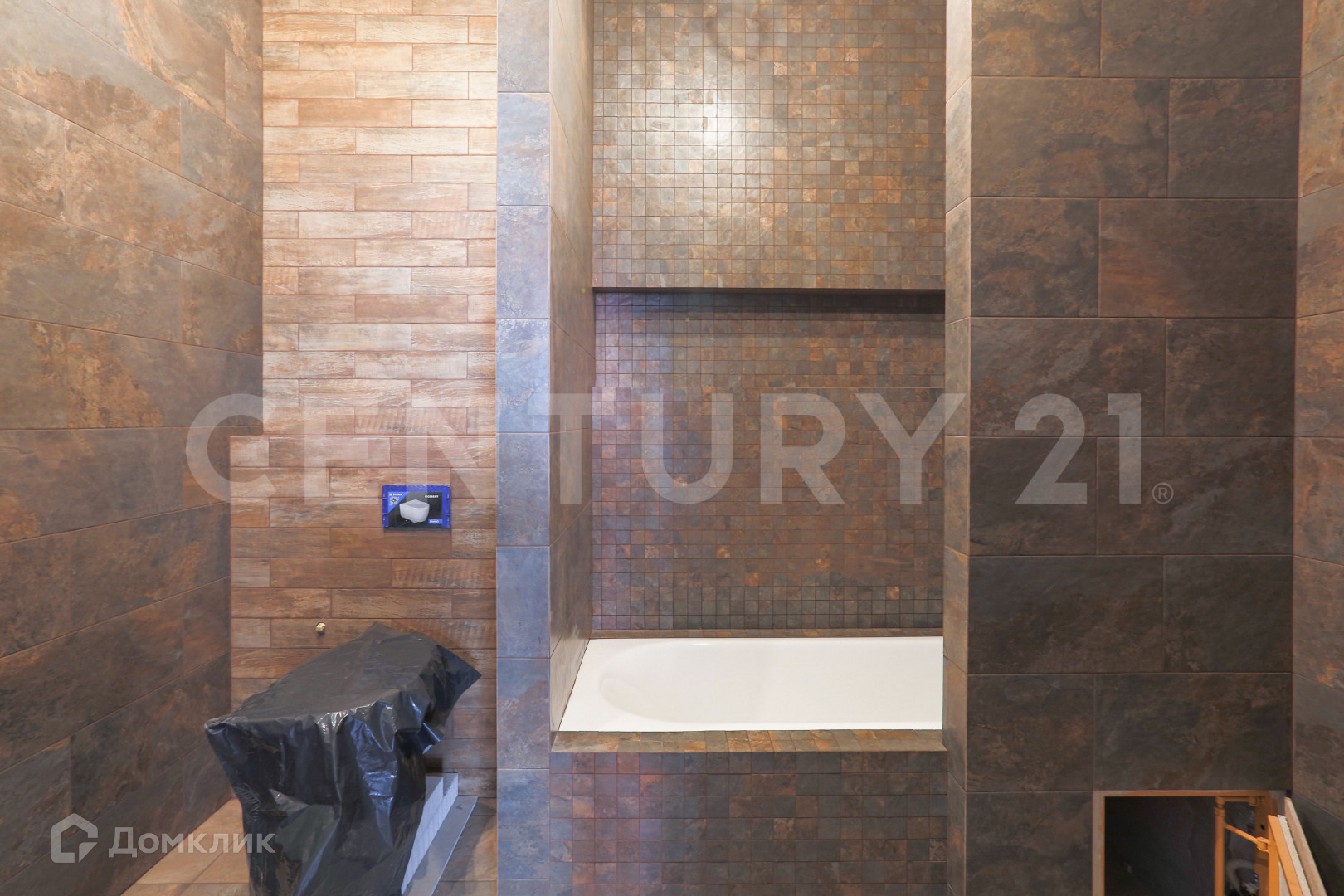 7. В санузлах положена плитка и установлены ванна и душевая кабина.