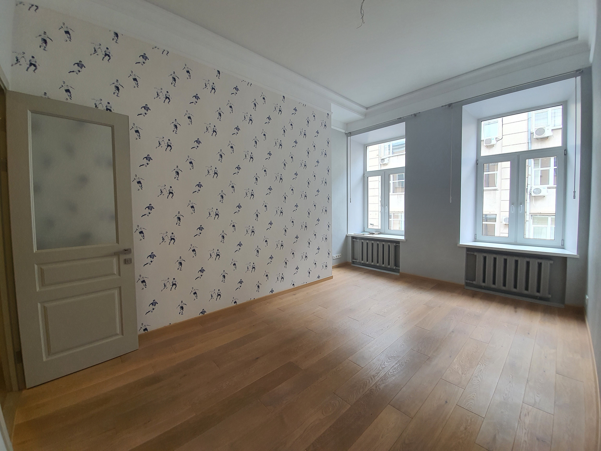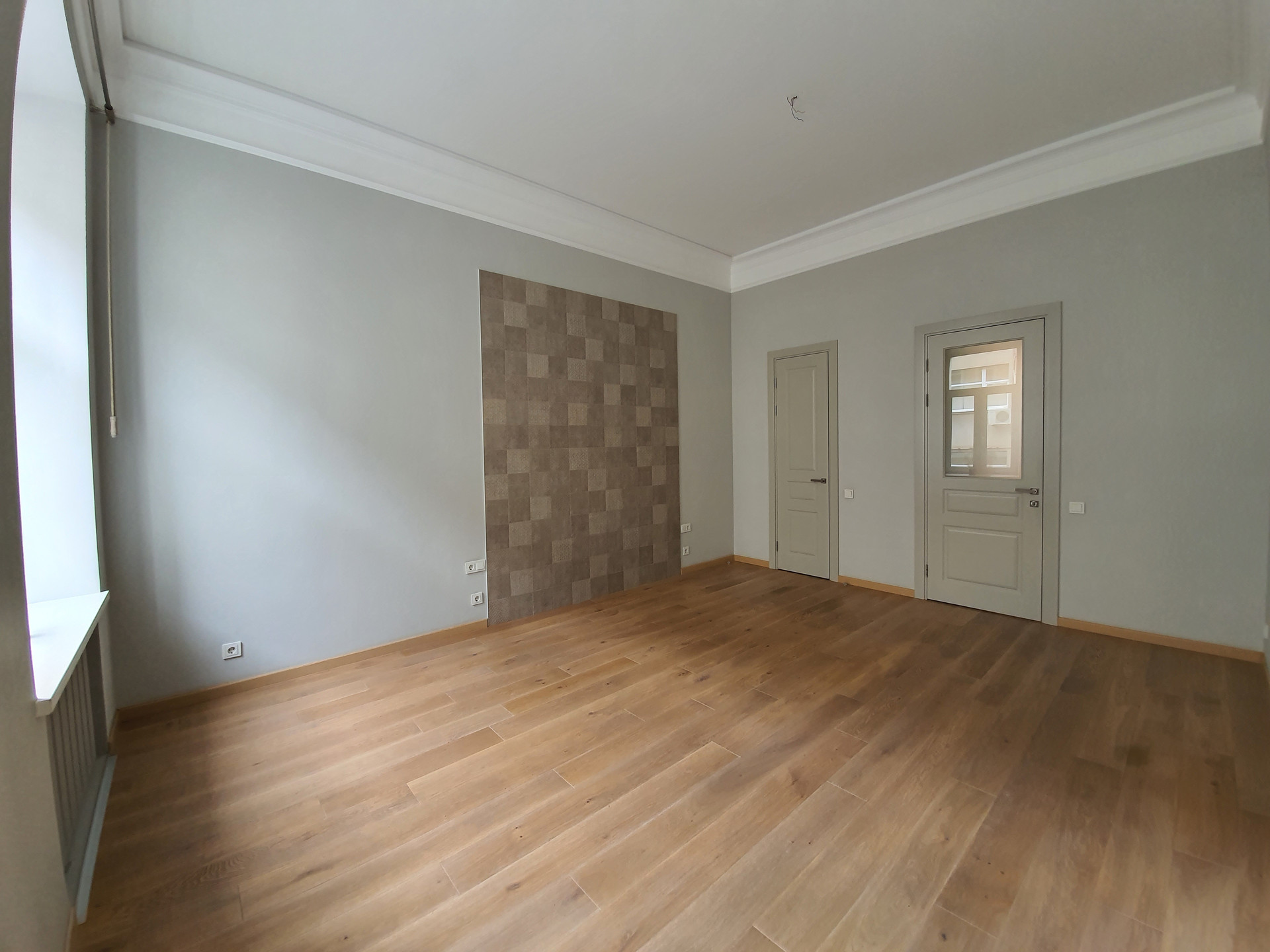 Общая площадь 174.1 кв.м, комнаты изолированные 38,2+18.9+15.1+16.9+16.5 кв.м , кухня 18,5 кв.м со встроенной техникой, 3 гардеробных, 2 вместительных санузла, высота потолков 3,85 м. Квартира расположена на 3 этаже 5 этажного кирпичного дома 1915 г.п., после реконструкции, лифт, чистый малонаселенный подъезд, 2 квартиры на площадке, тихо, зелено.