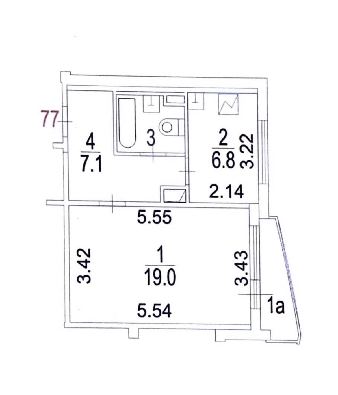 Жилая площадь 19 м2