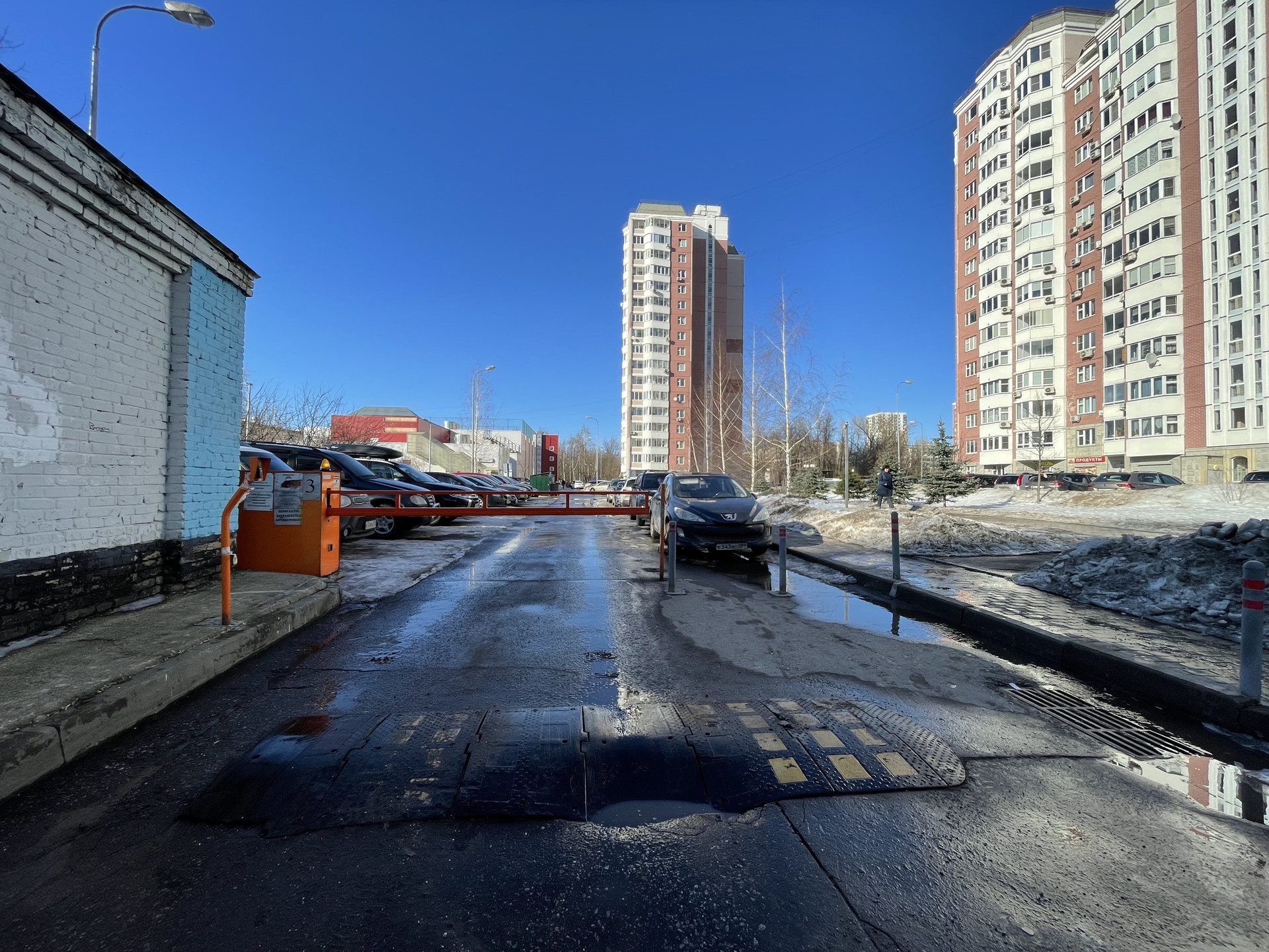 Въезд на территорию под шлагбаум.