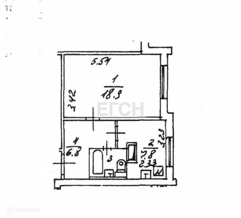Жилая площадь 18.9 м2