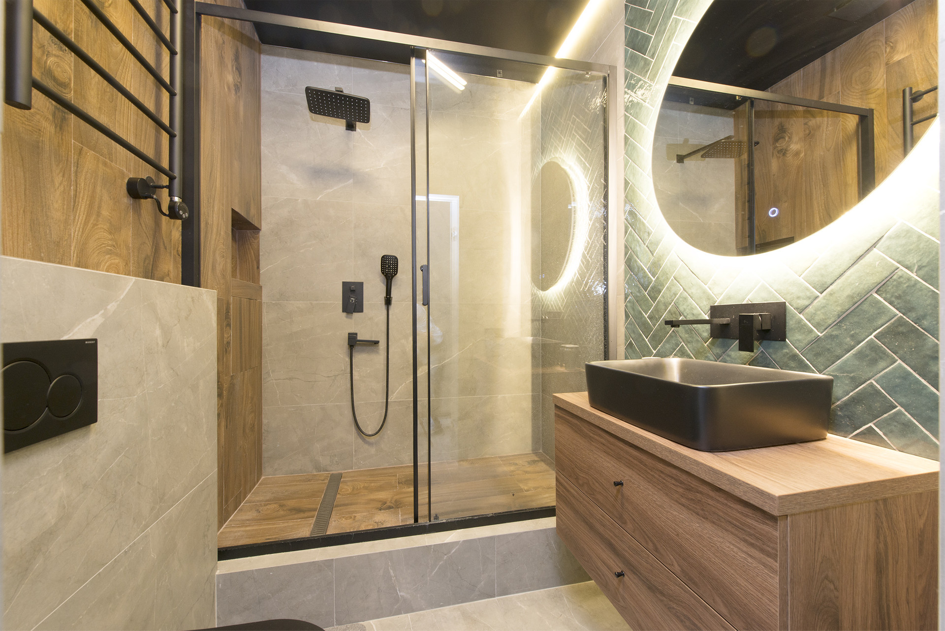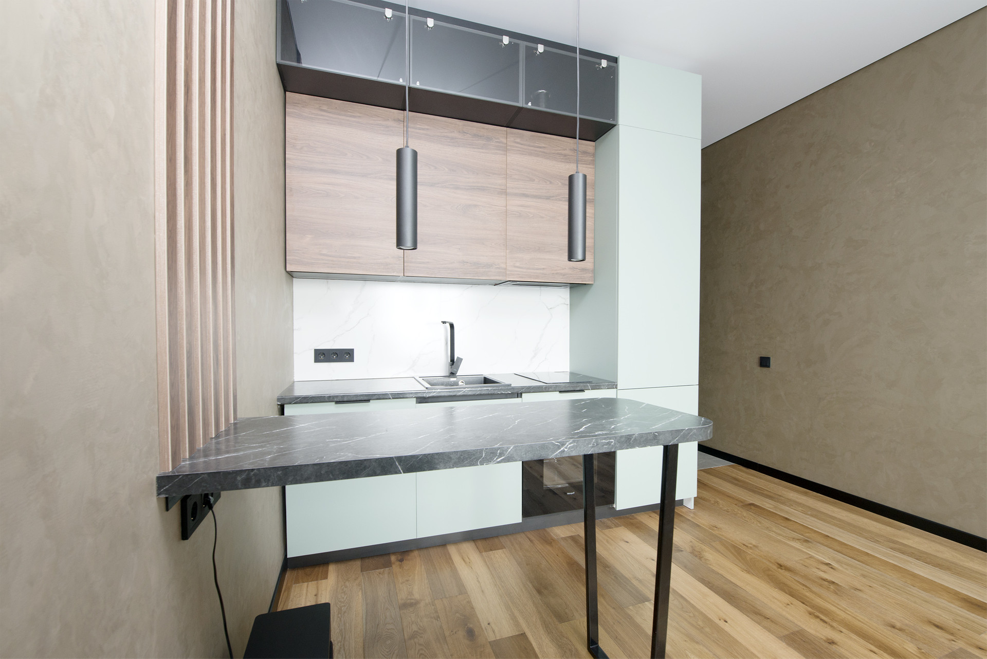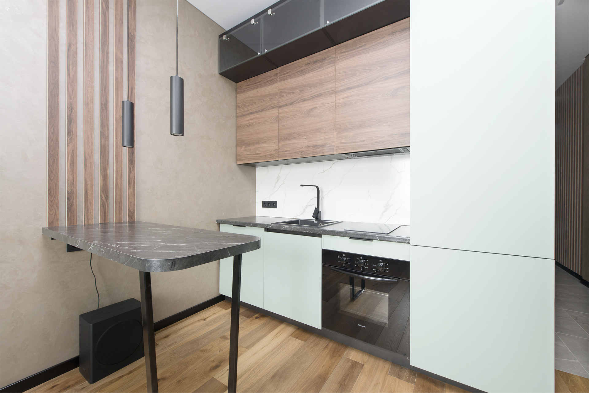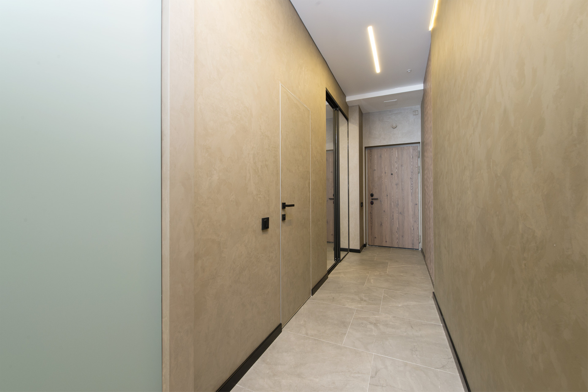 В студии выполнен дизайнерский ремонт с применением качественных материалов отделки.