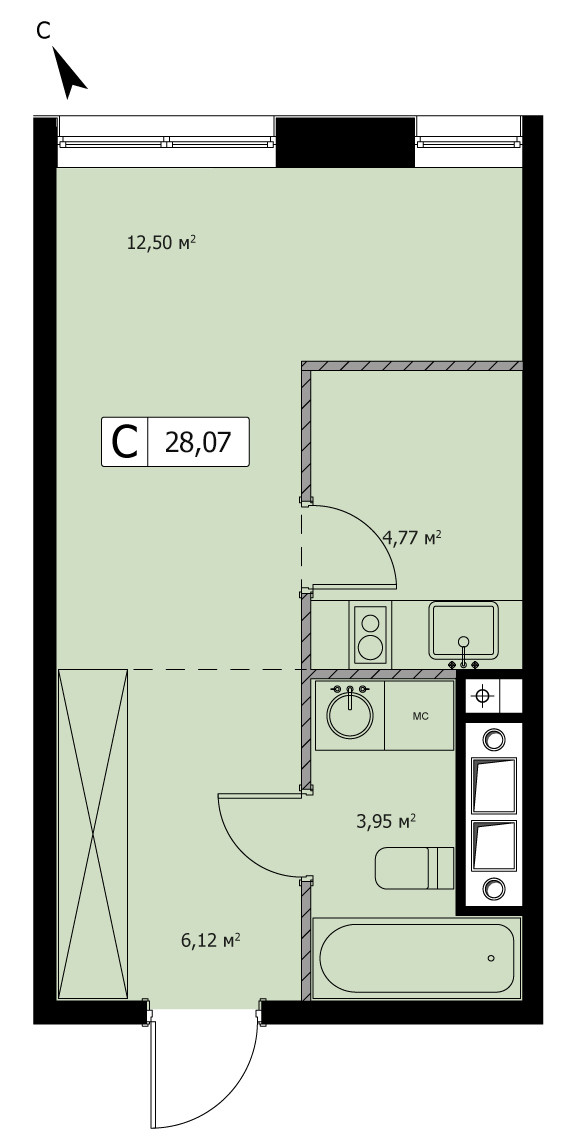 Общая площадь 28.07 м2