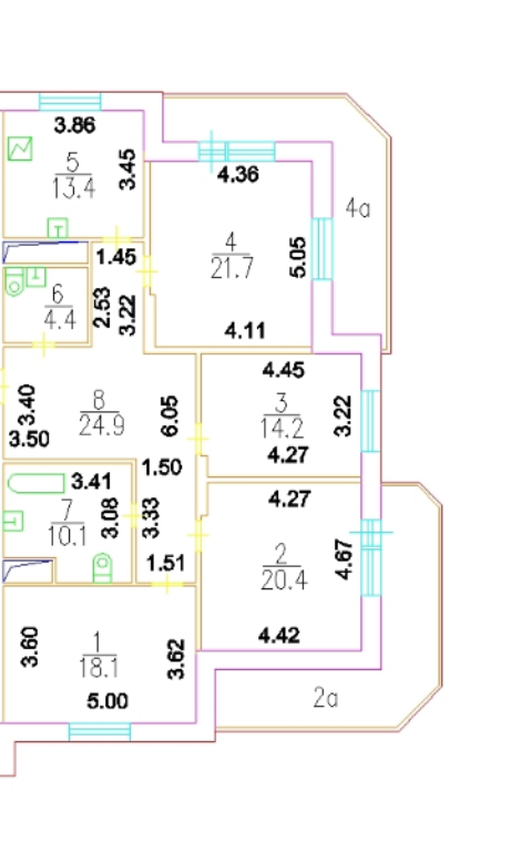 Жилая площадь 74.4 м2