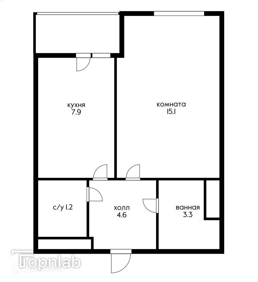 Общая площадь 33.8 м2