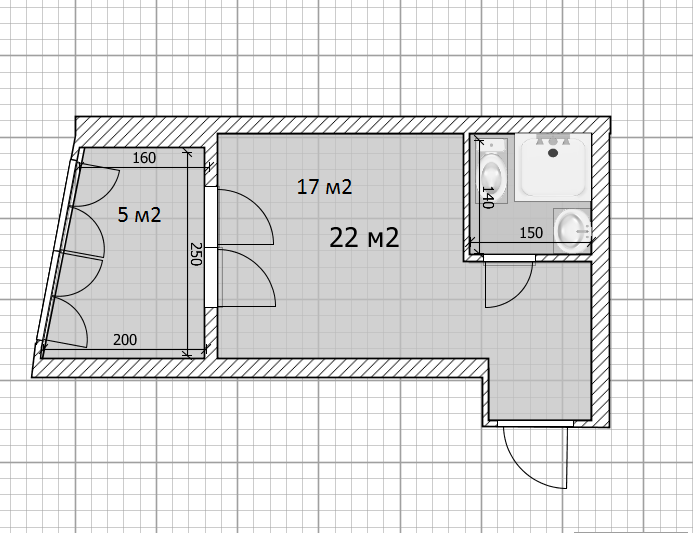 Общая площадь 22 м2