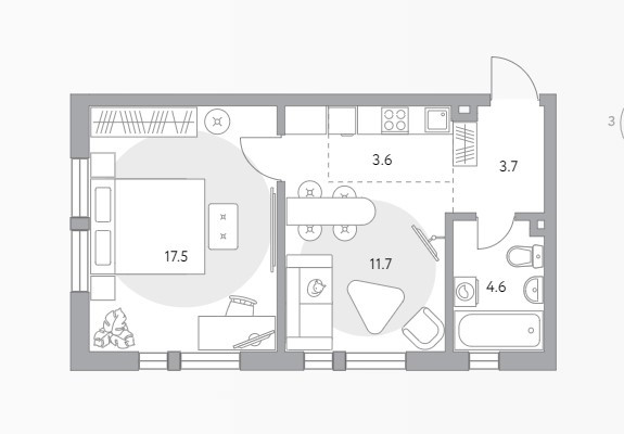 Жилая площадь 17.5 м2