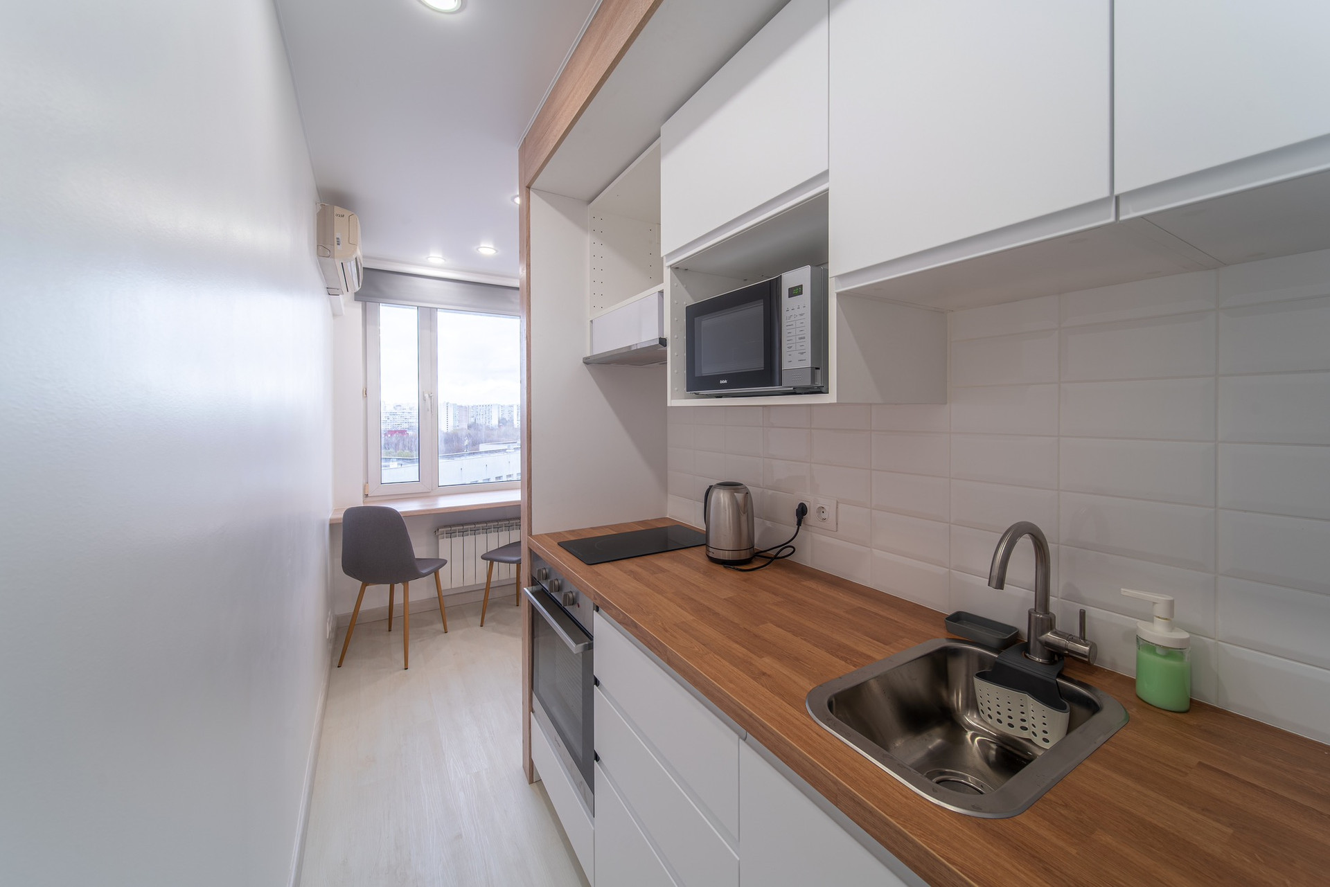 В апартаменте сделан дизайнерский ремонт, установлен кондиционер, и что немаловажно ванна .