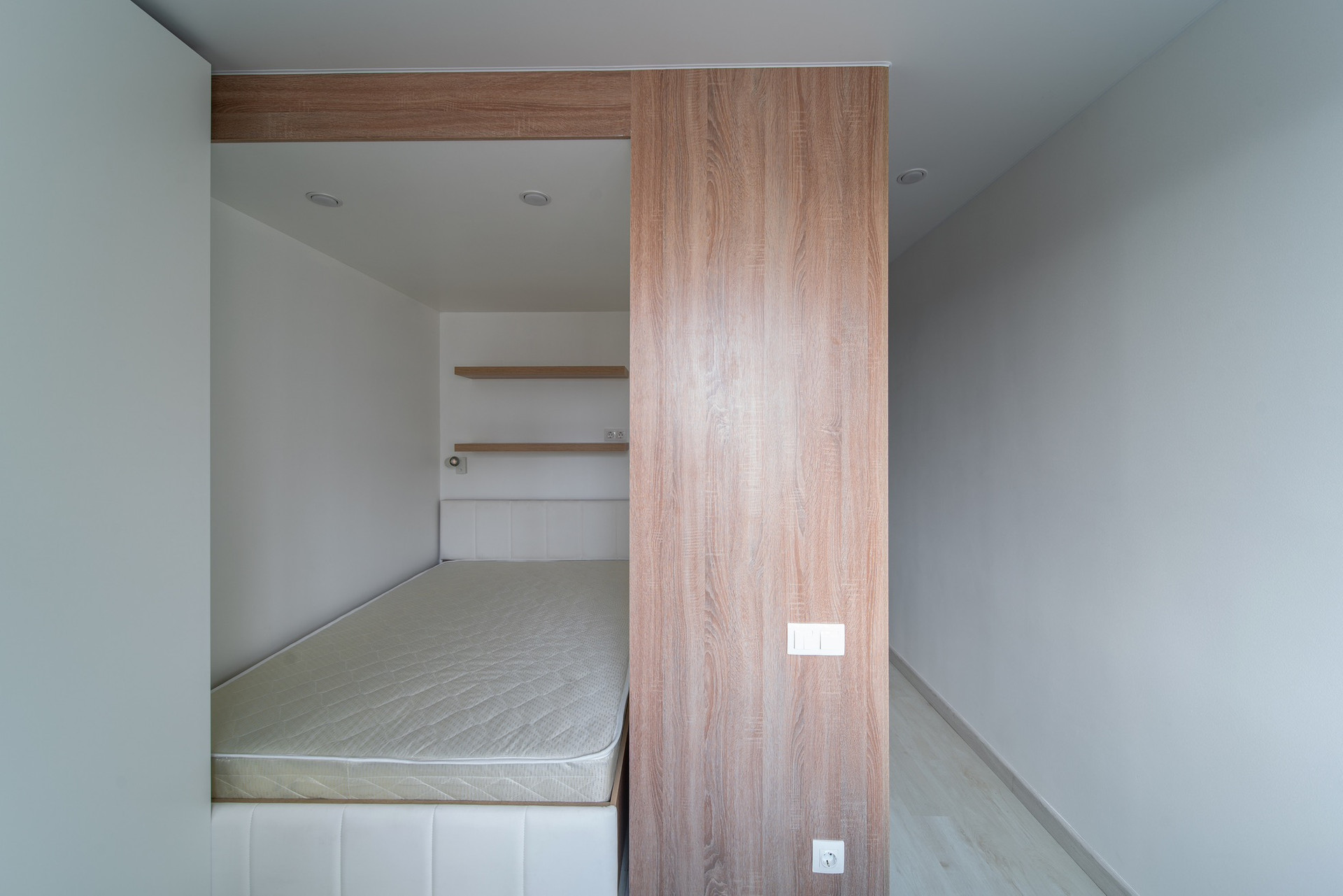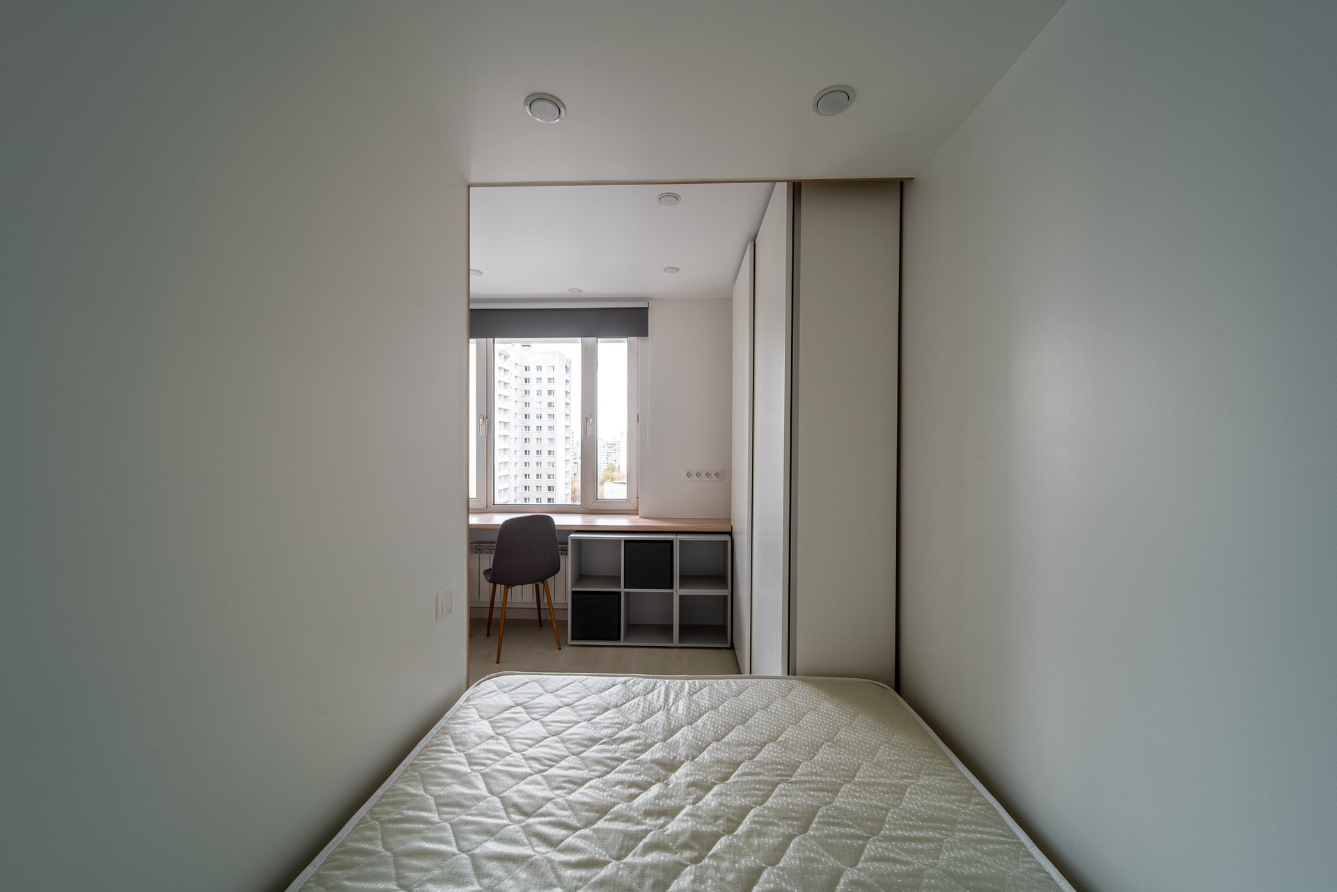 Продуманное количество мест хранения и подьемный механизм кровати позволит разместить гардероб 2х человек .
