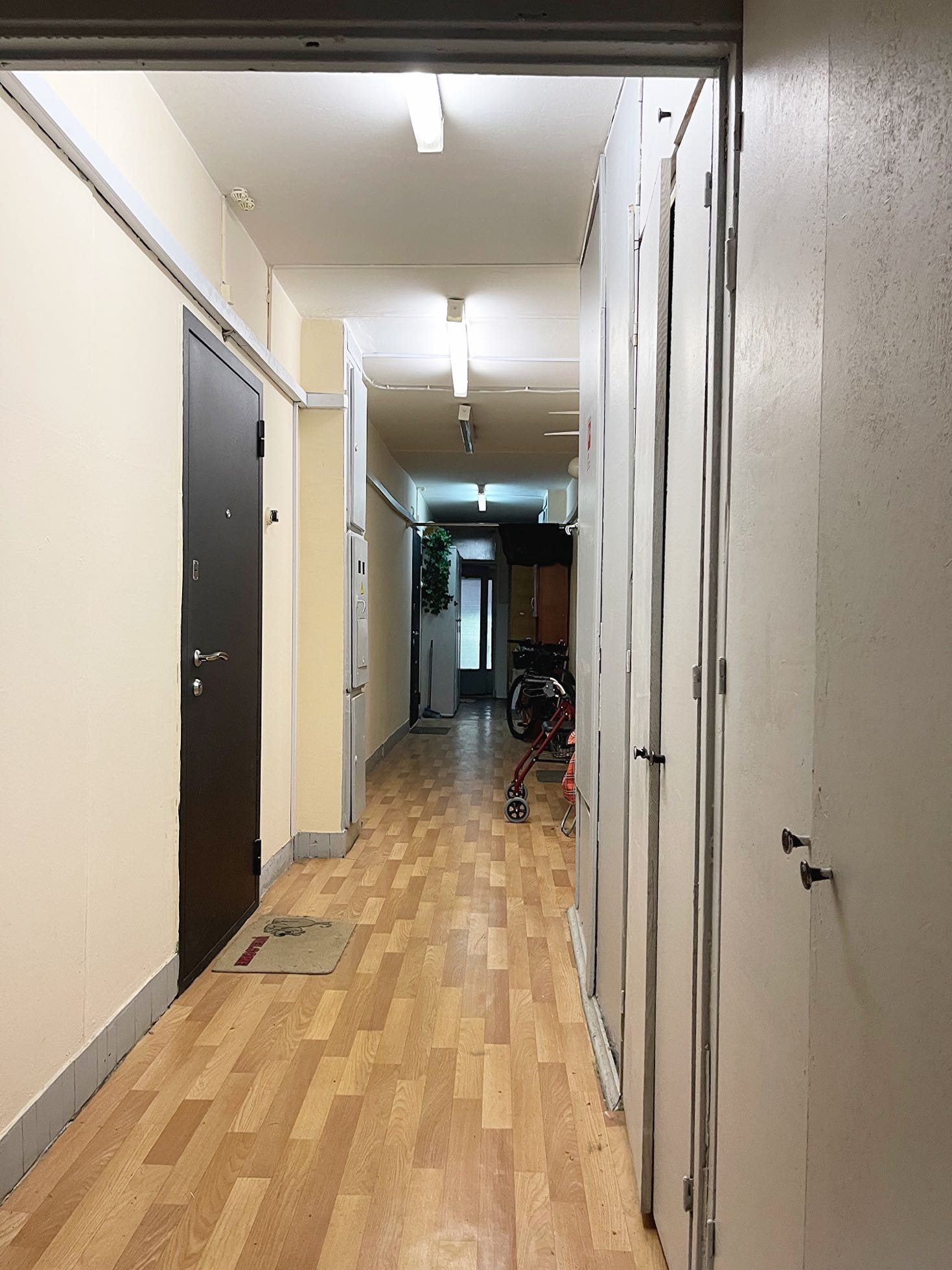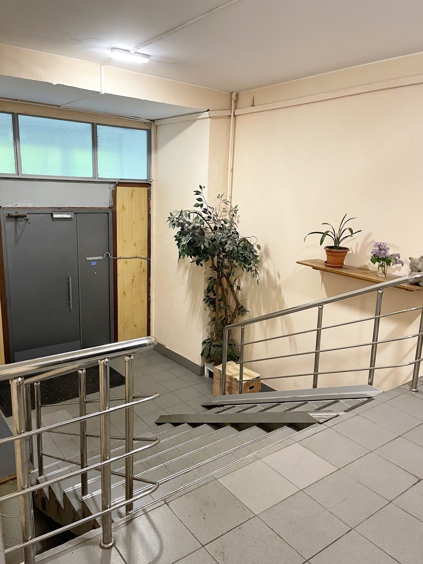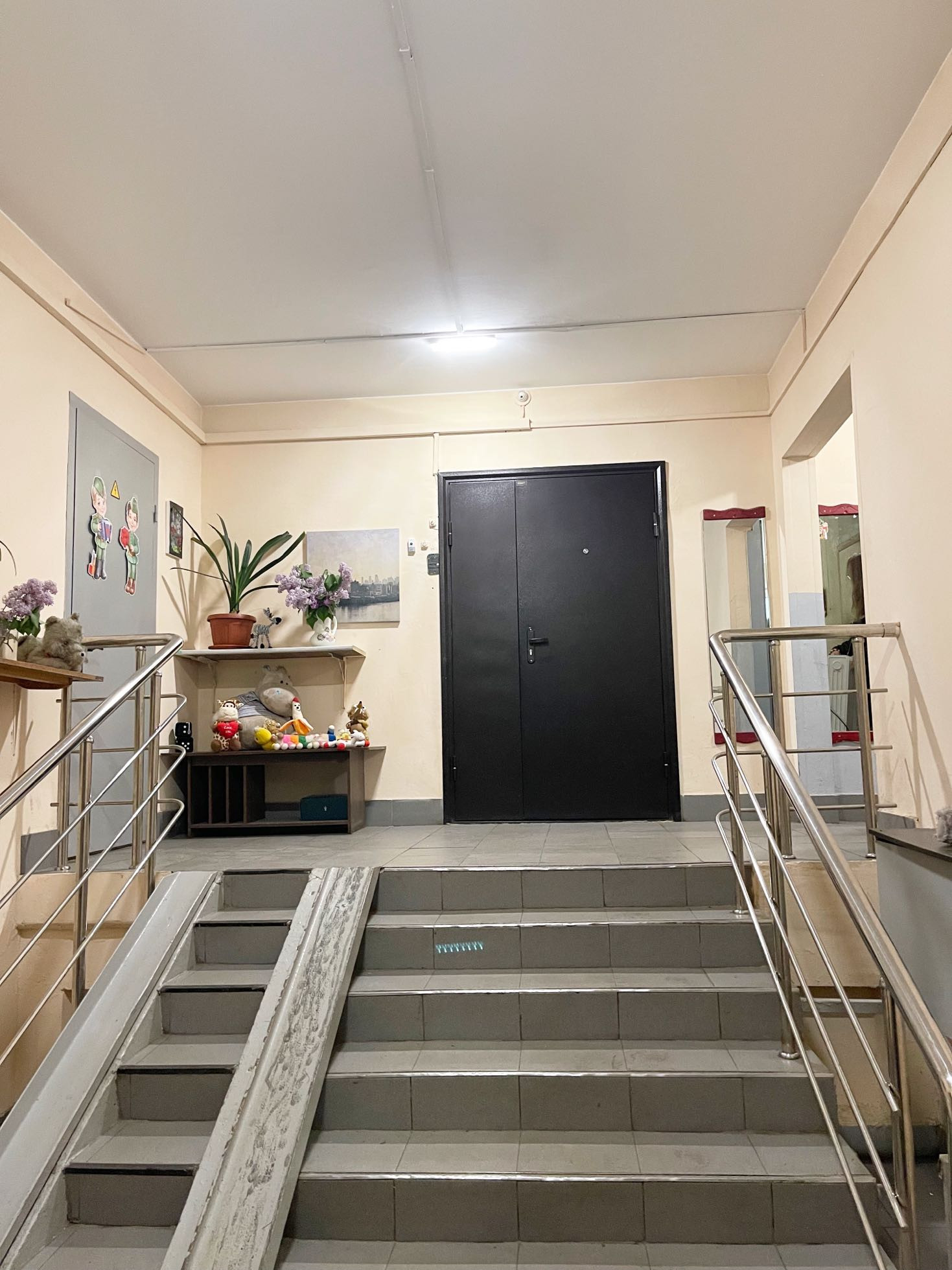 Очень чистый подъезд, консьерж, грузовой и пассажирский лифт, двери на площадке закрываются, спокойные соседи.