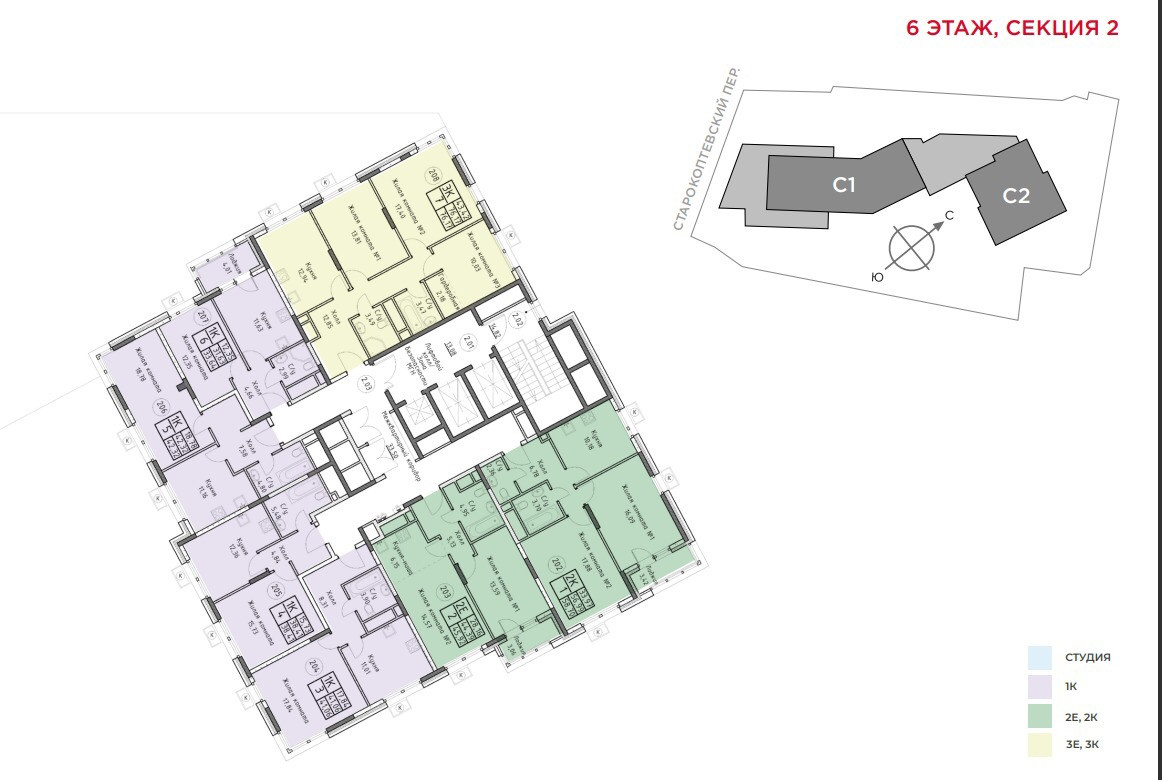 2-комнатная квартира, 45.9 м2, этаж 6 / 22, на продажу в Москве, Старокоптевский переулок, 4