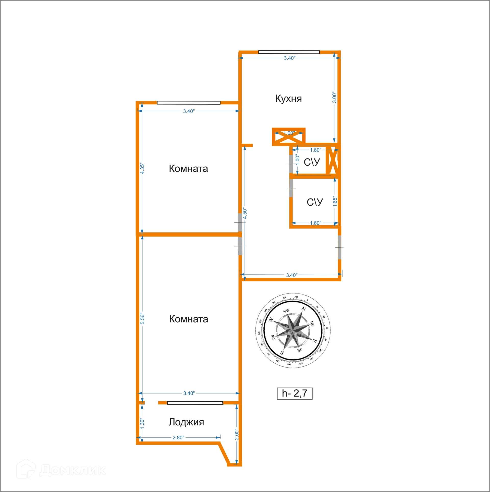 Высота потолков 2.7 м