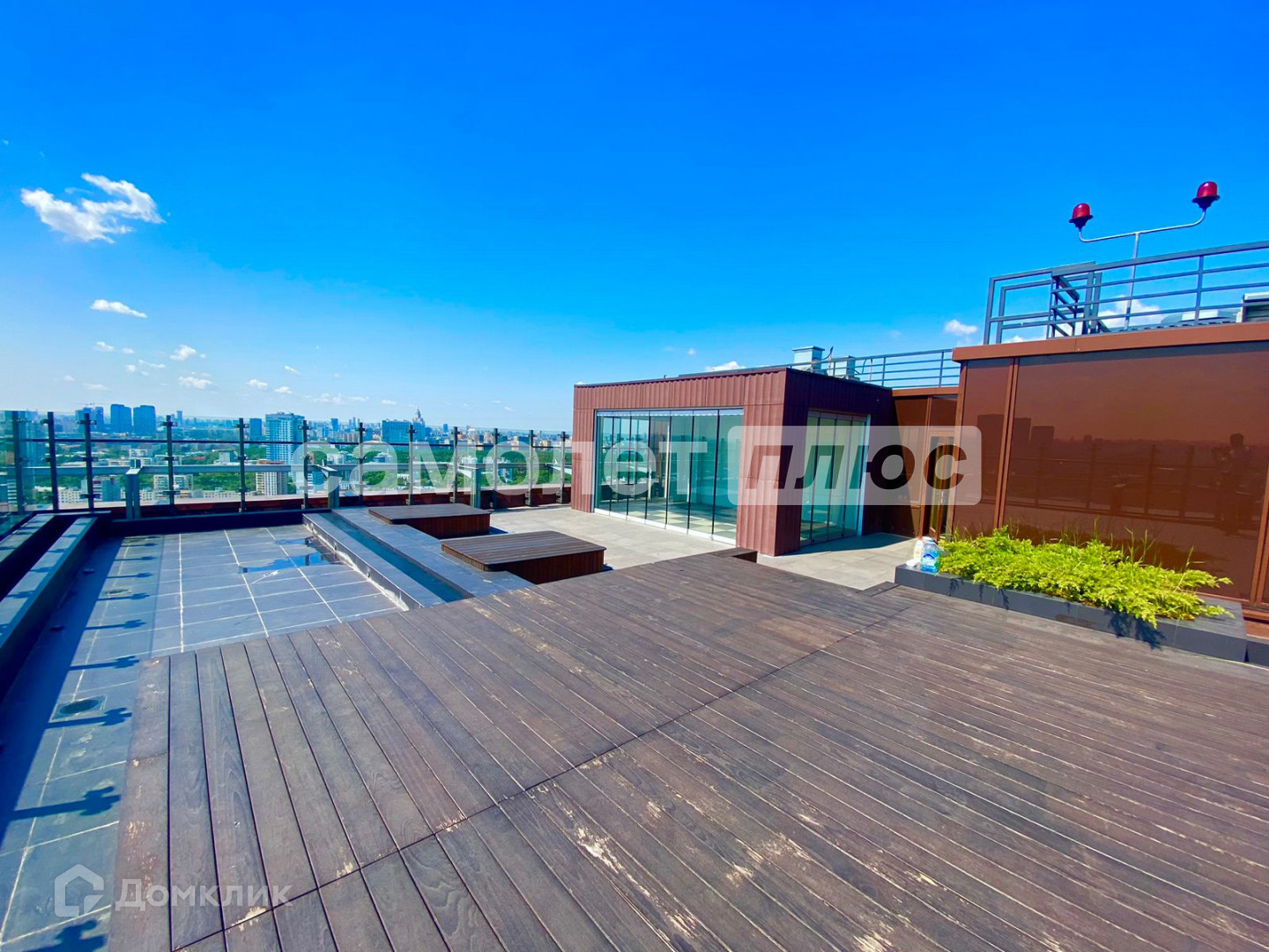 В соседнем корпусе на последнем этаже есть терраса с закрытой зона для проведения пикников или романтических вечеров с шикарным видом на Москву (29 этаж , вид на Москва Сити и Останкинскую башню) Или поставить лежаки и по загорать.