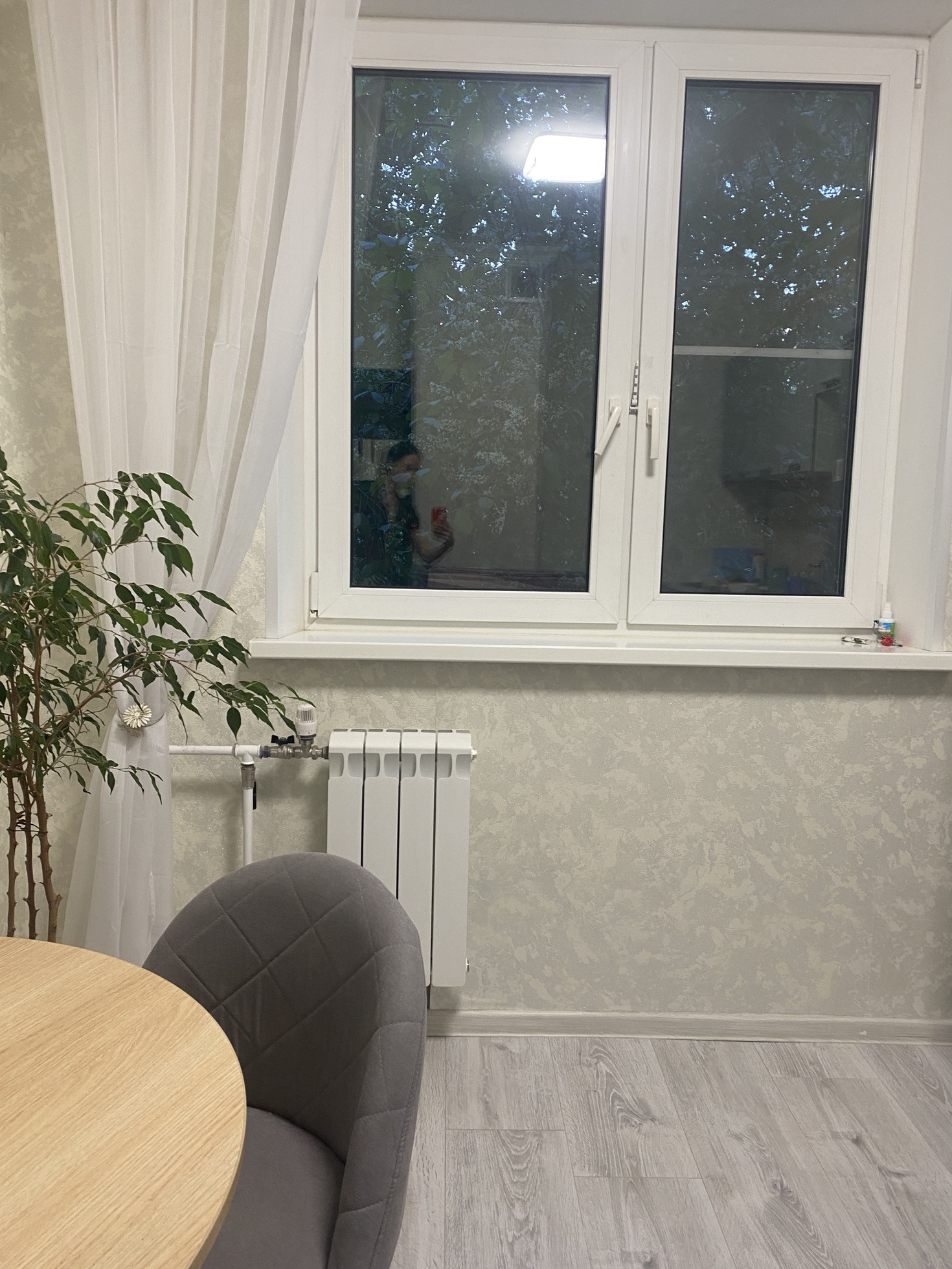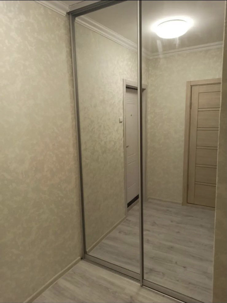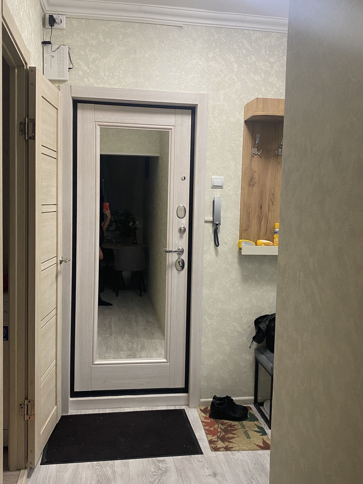 Входная дверь заменена на дверь с зеркалом.