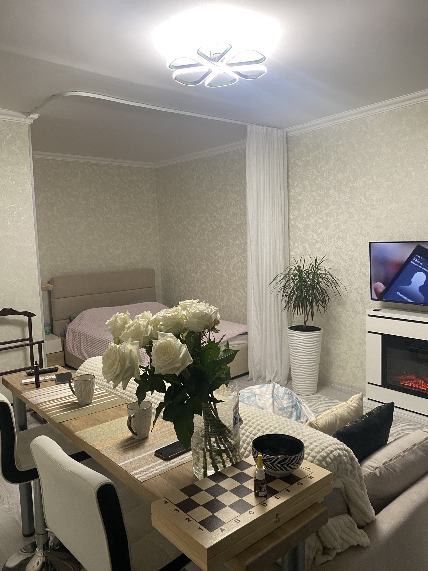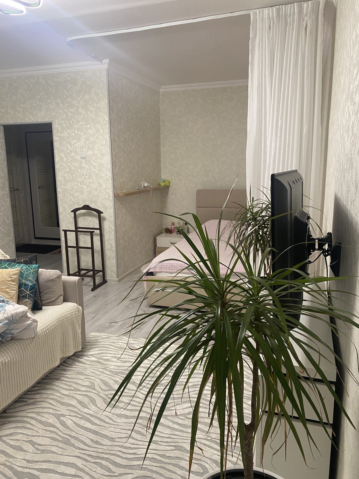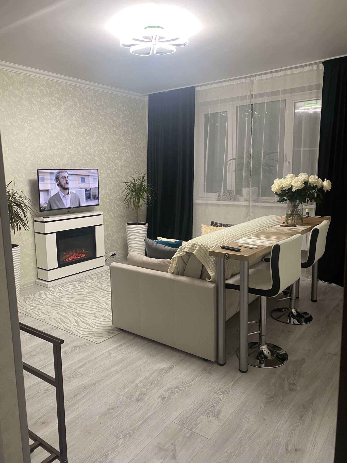 Входная дверь заменена на дверь с зеркалом.
