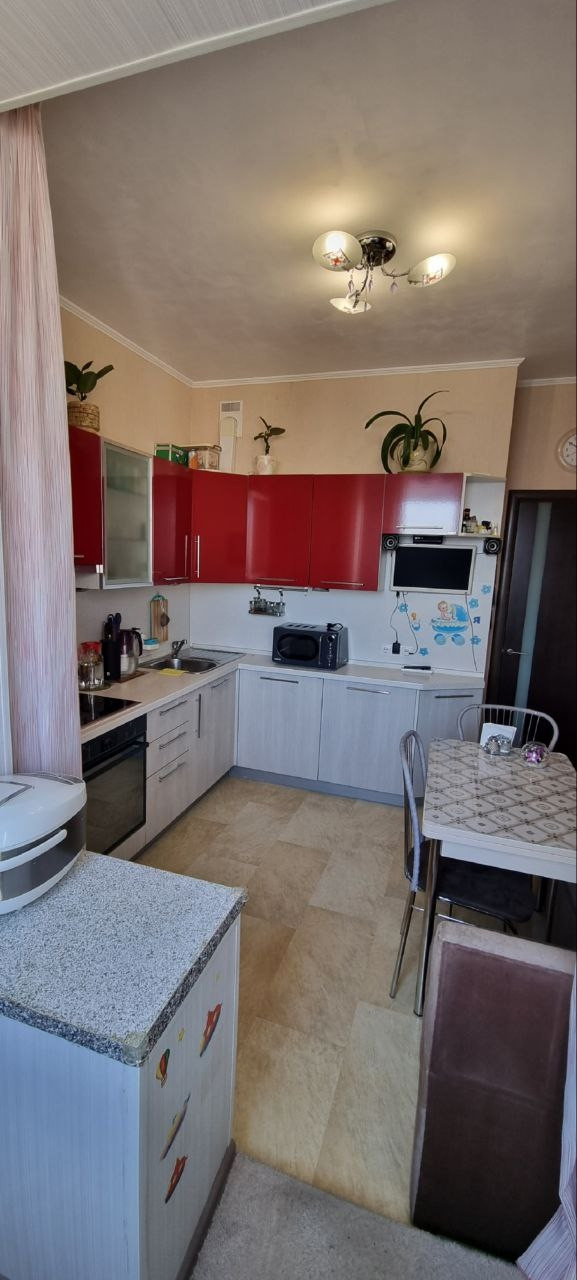 Продаётся уютная 1- комнатная квартира на 14-ом этаже панельного дома. Отличная планировка, светлая комната, кухня совмещена с лоджей без конструктивных изменений, что очень удобно как для кабинета, так и доп комнаты, угловая кухня фирмы "Мария" отличного качества. С/у