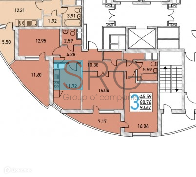 3-комнатная квартира, 86.9 м2, этаж 4 / 39, на продажу в Москве, проспект 60-летия Октября, 17