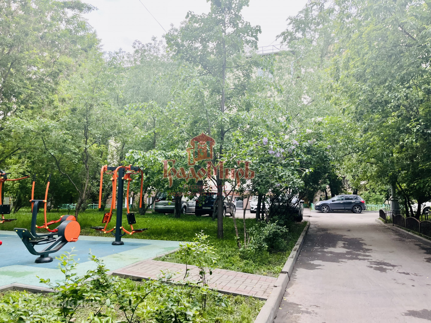 Во дворе есть детская площадка и огороженная парковка.