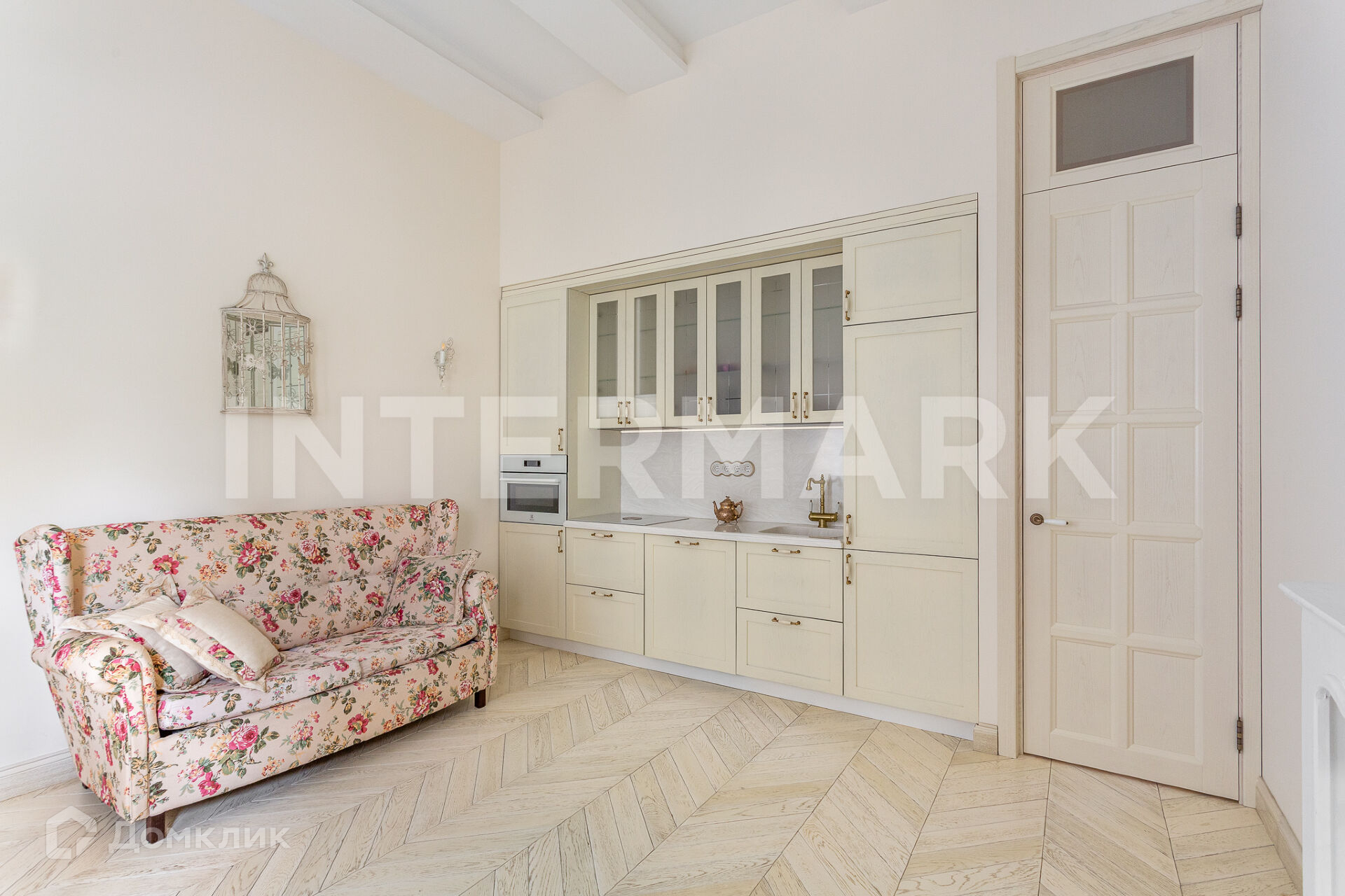 ID 64110. Светлая. уютная квартира с новым ремонтом в стиле Прованс в доме с ж/б перекрытиями в 150 м от Патриарших прудов. Планировка: кухня-гостиная с эркерным окном, спальня, ванная комната, вместительная гардеробная. Пол - дубовый беленый паркет с золотой патиной, двери по индивидуальному заказу. Нереально высокие потолки 3,4 метра с правильным освещением.