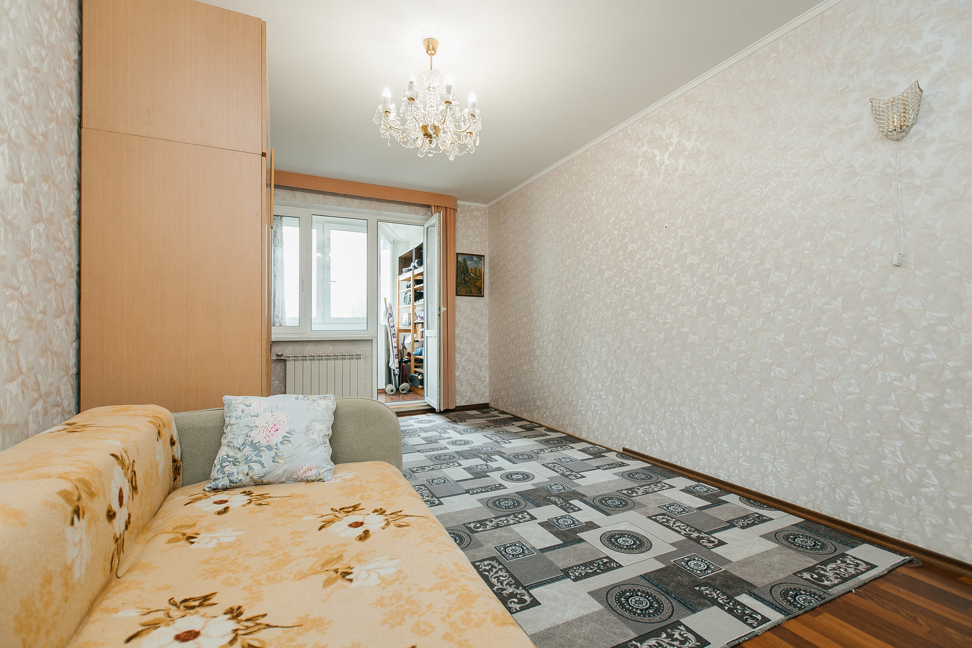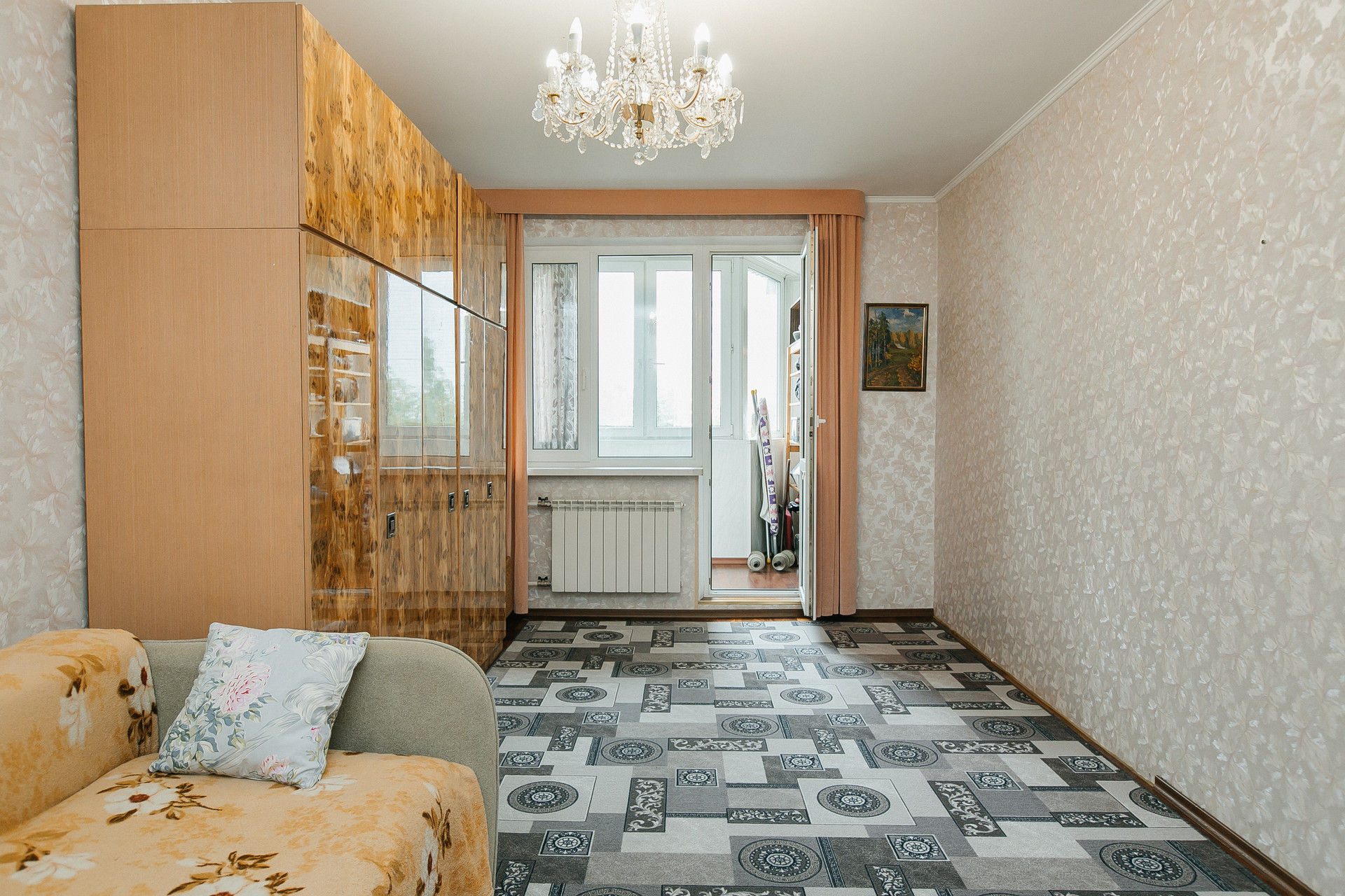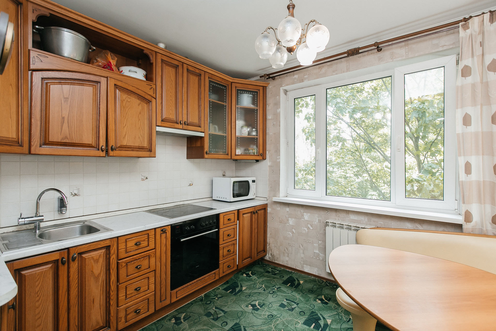 Ремонт выполнен из качественных материалов (для себя): пол- паркетная доска, деревянная кухня, индивидуальный пошив штор в каждой комнате и пр. Утепленная, как отдельная комната - лоджия.