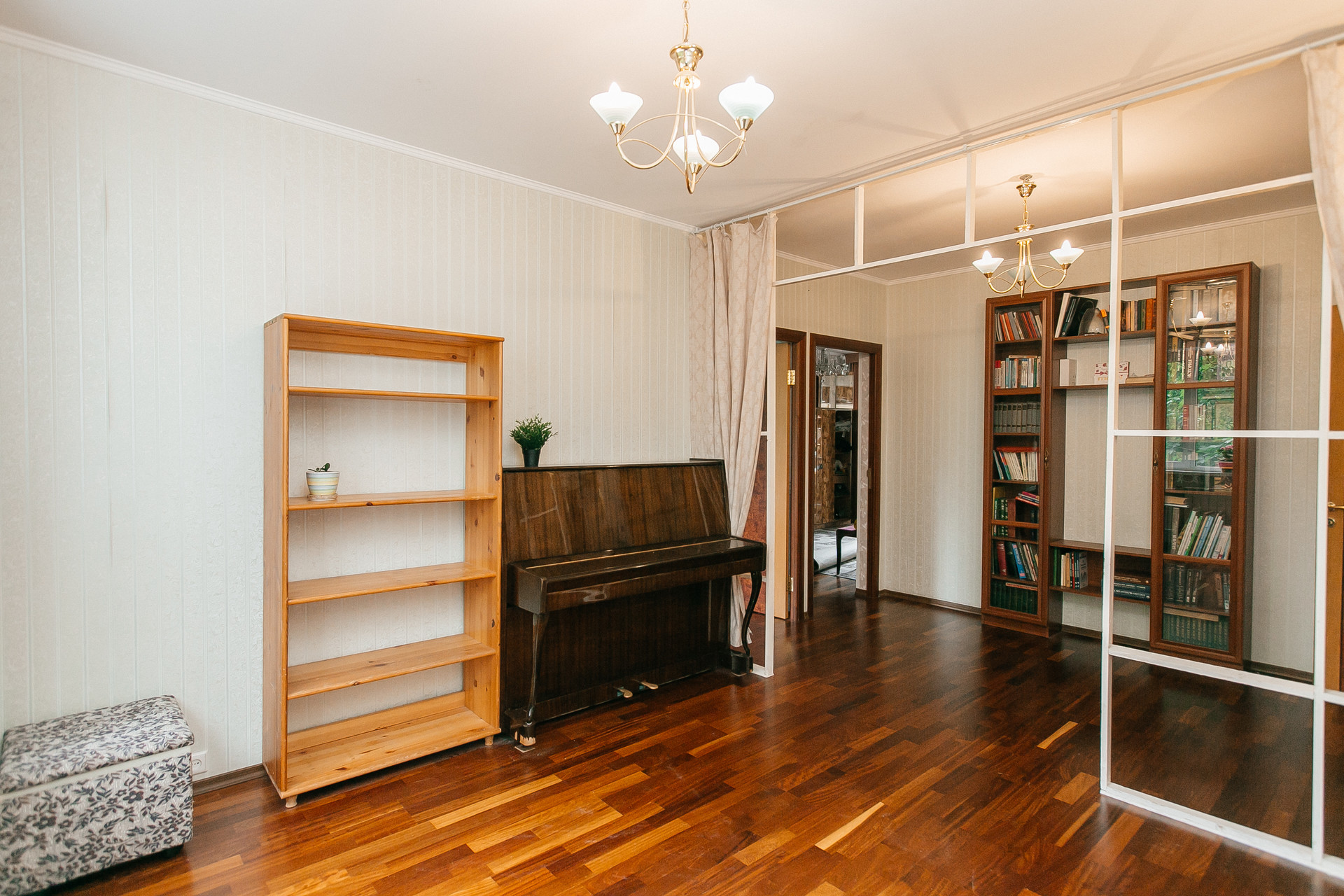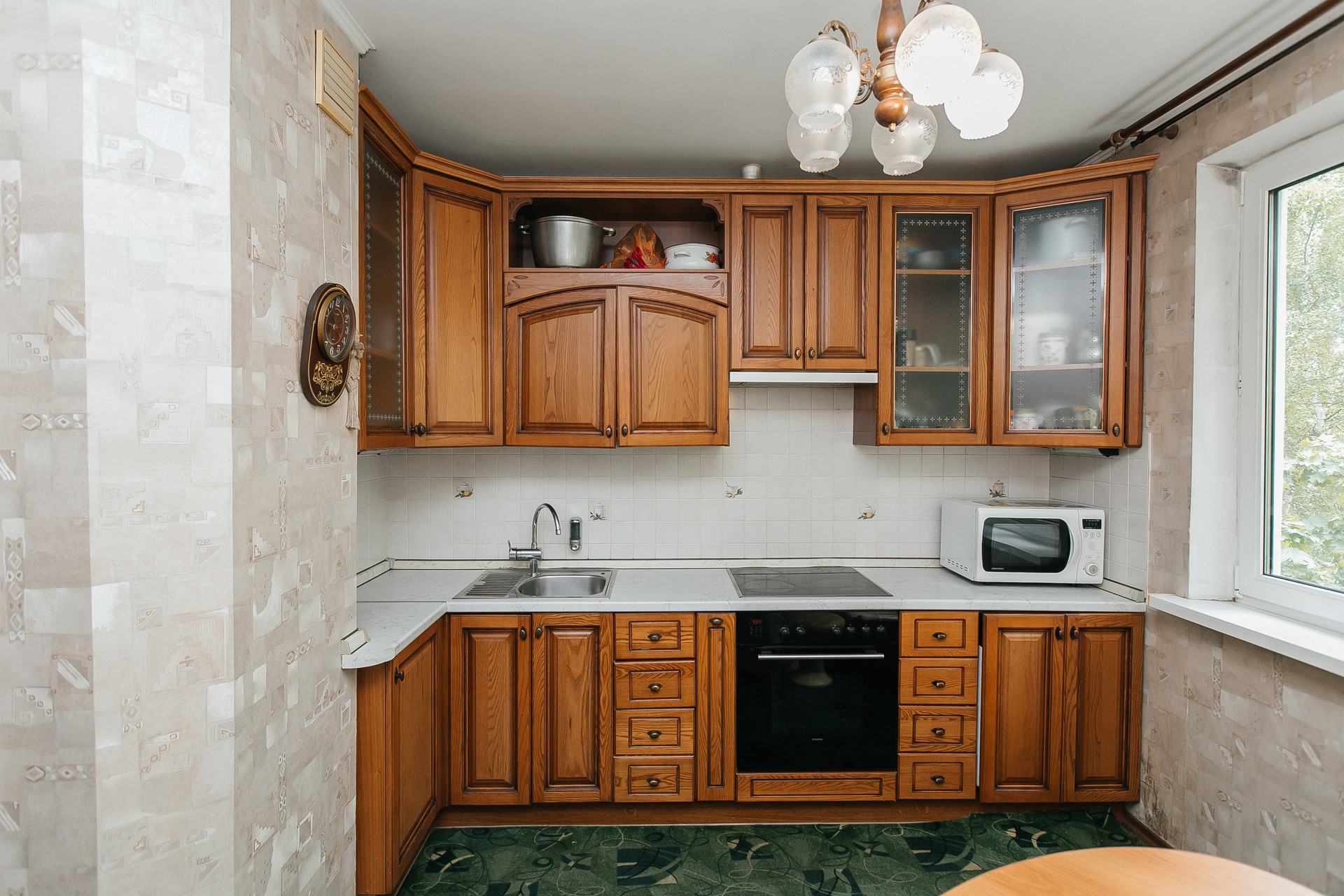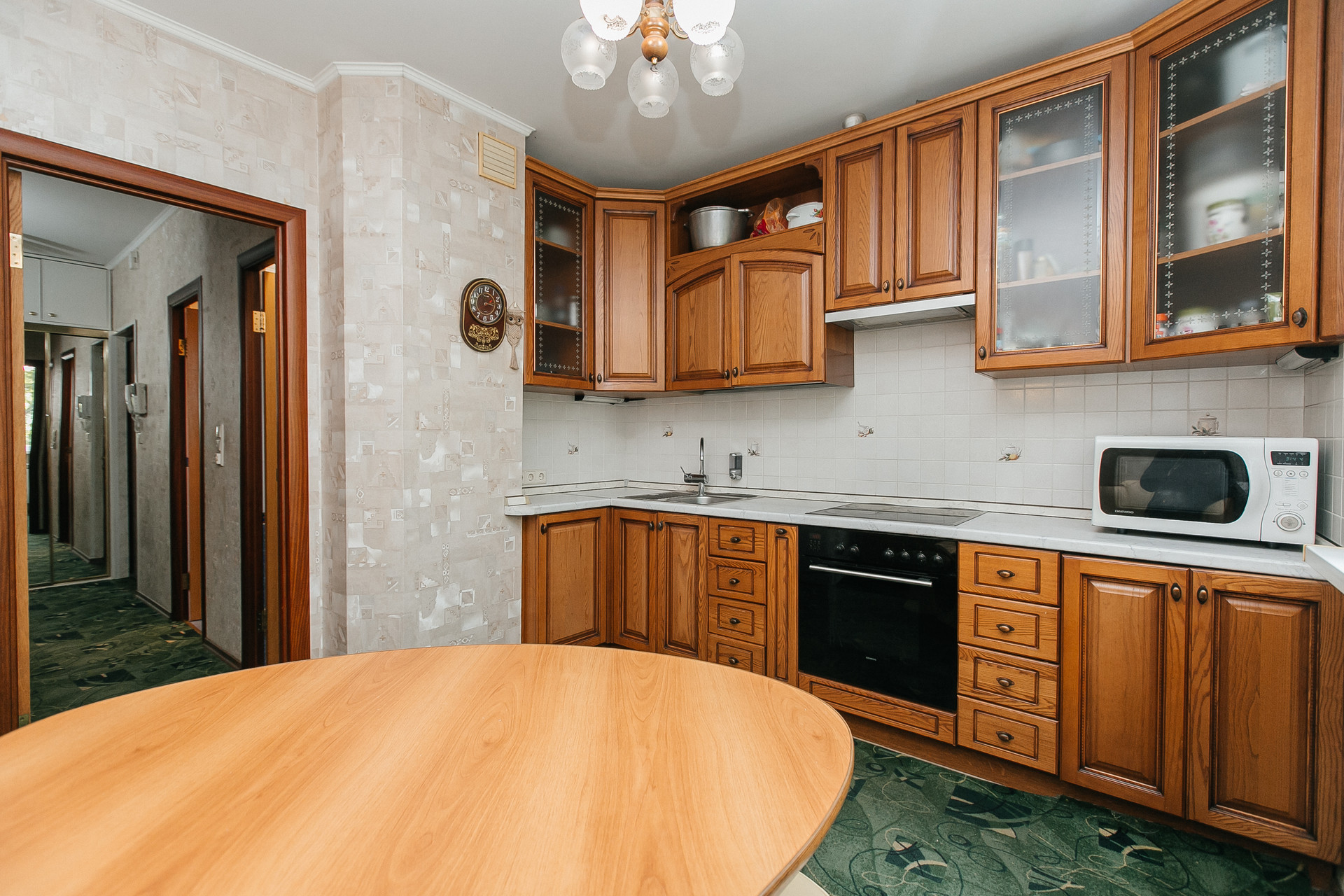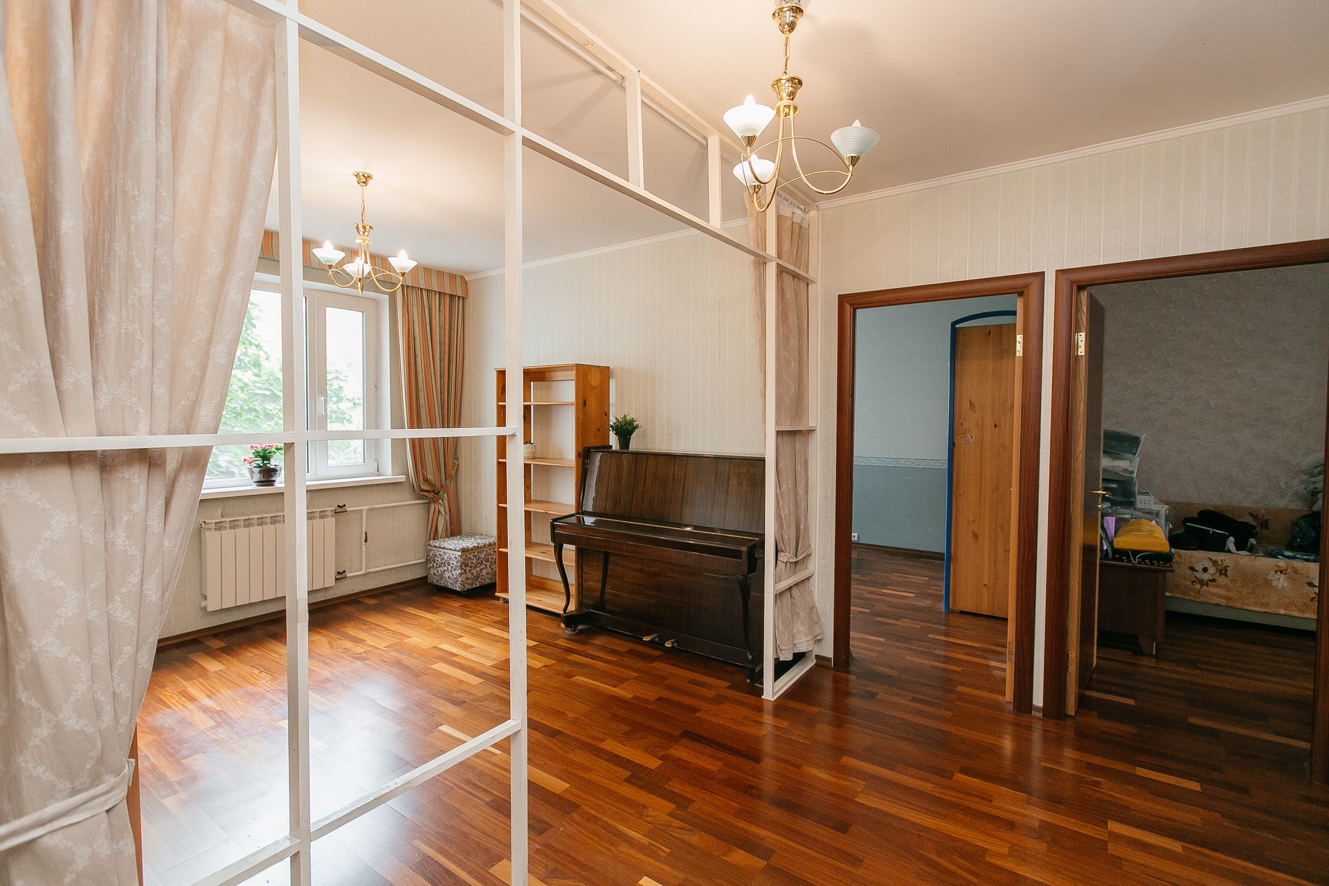 Ремонт выполнен из качественных материалов (для себя): пол- паркетная доска, деревянная кухня, индивидуальный пошив штор в каждой комнате и пр. Утепленная, как отдельная комната - лоджия.