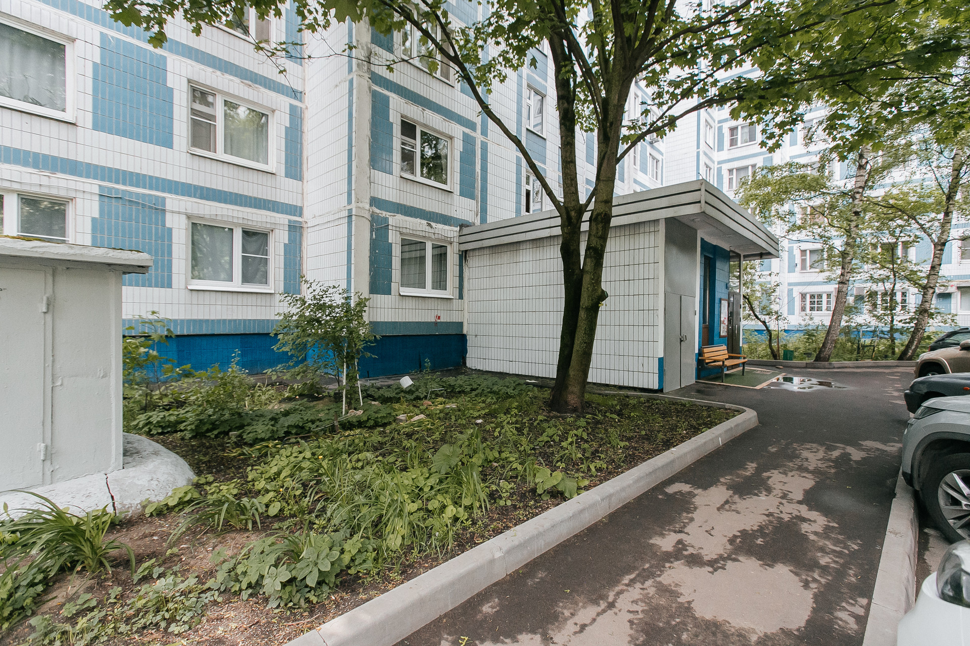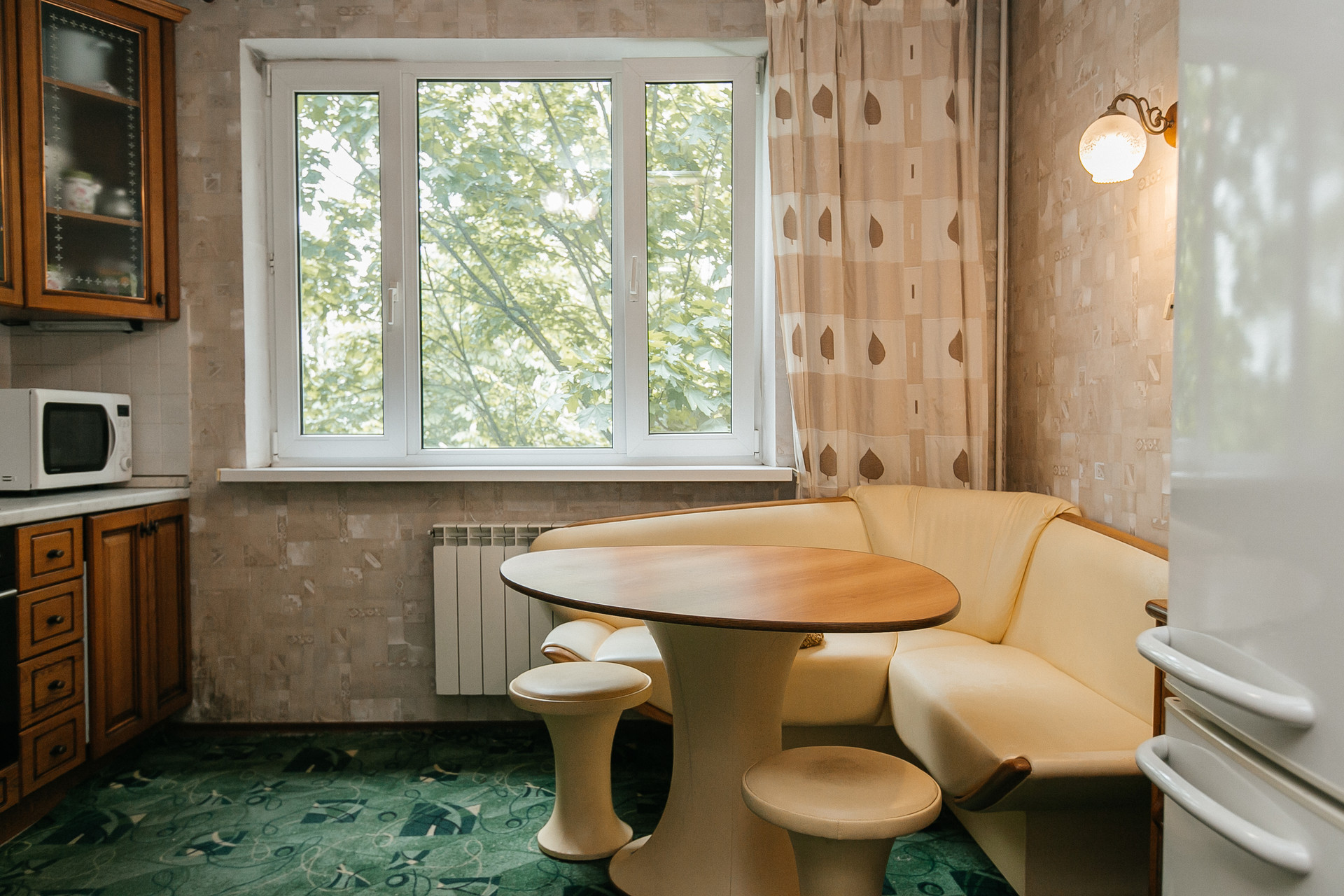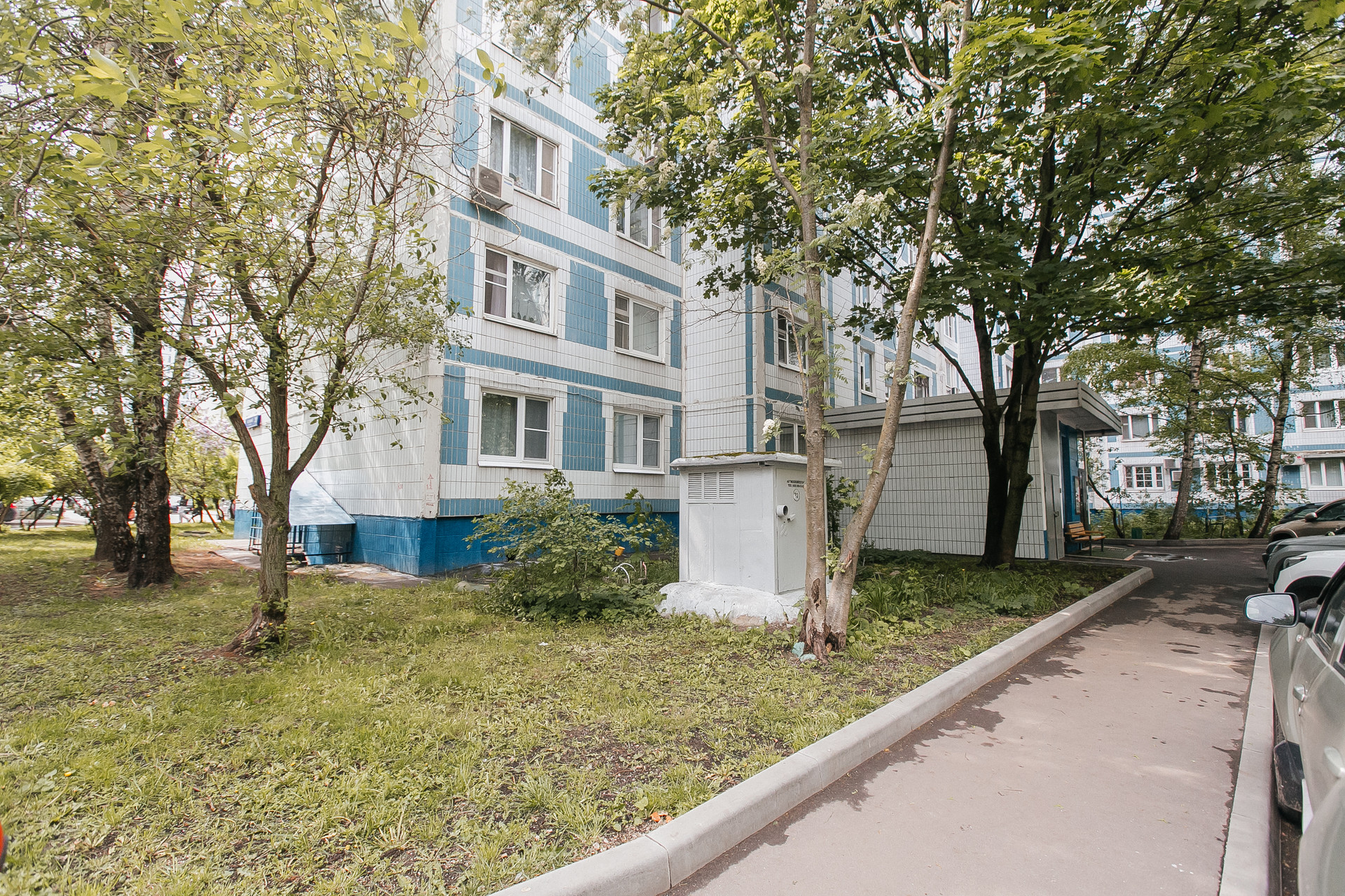 Окна выходят в тихий и зеленый двор с детской площадкой.