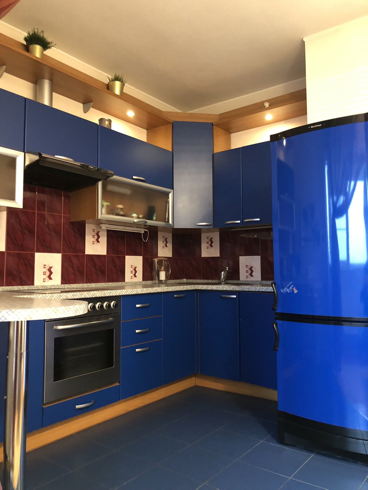 Шикарная однокомнатная квартира в доме бизнес класса ЖК Староватутинский на 15 этаже.Превосходная планировка,ремонт дизайнерский из дорогостоящих материалов. Просторная ,светлая комната объединена с лоджией,через которую можно попасть на кухонную зону.В квартире очень тепло. Выделены зоны - подиум с отдельным освещением.Высокие потолки с многоуровневым  освещением. Двери итальянские,индивидуальный заказ - закалённое матовое стекло и железо в цвете серебра,петли латунные с никель-хром покрытием.Дизайнерские люстры (Италия), так же сделаны под заказ.Встроенные шкафы.Напольное покрытие : добротный пакет,плитка.Санузел совмещённый, сантехника итальянская,джакузи -гидромассажная ванна. В квартире установлена вся бытовая техника премиум класса.Всё остаётся в квартире и входит в стоимость.