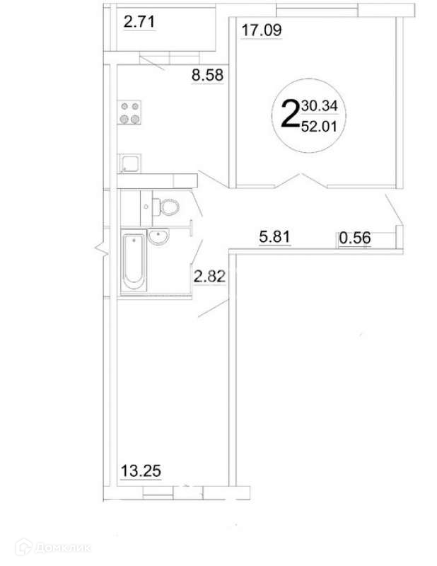 Общая площадь 52.3 м2