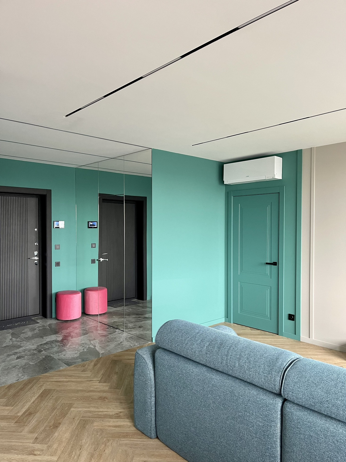 В квартире индивидуальный дизайнерский ремонт.