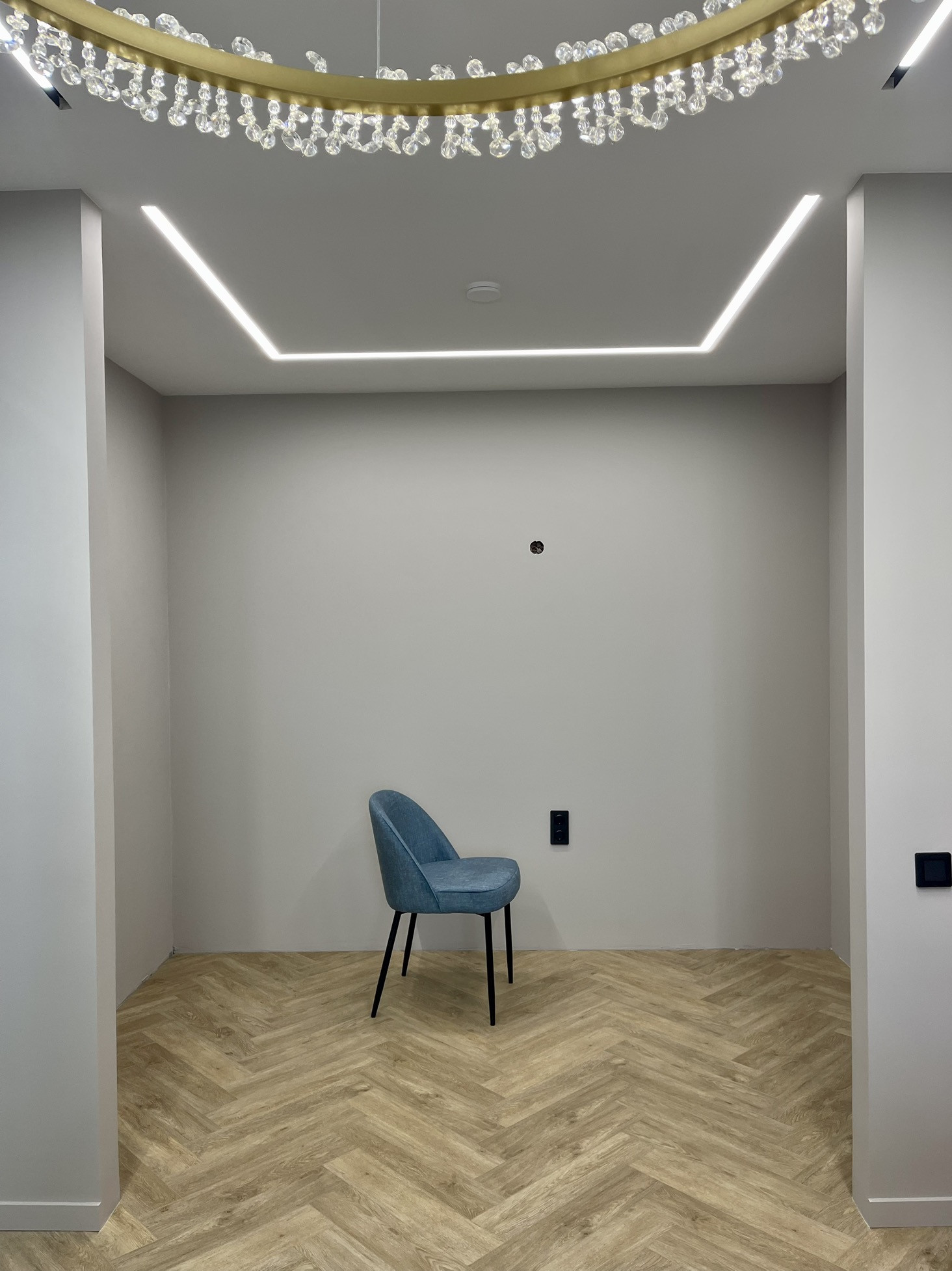 Кухня-гостиная, смежная, с общей зоной. Из техники: вытяжная труба Maunfеld (стального цвета), люстра на кухню прилагается.