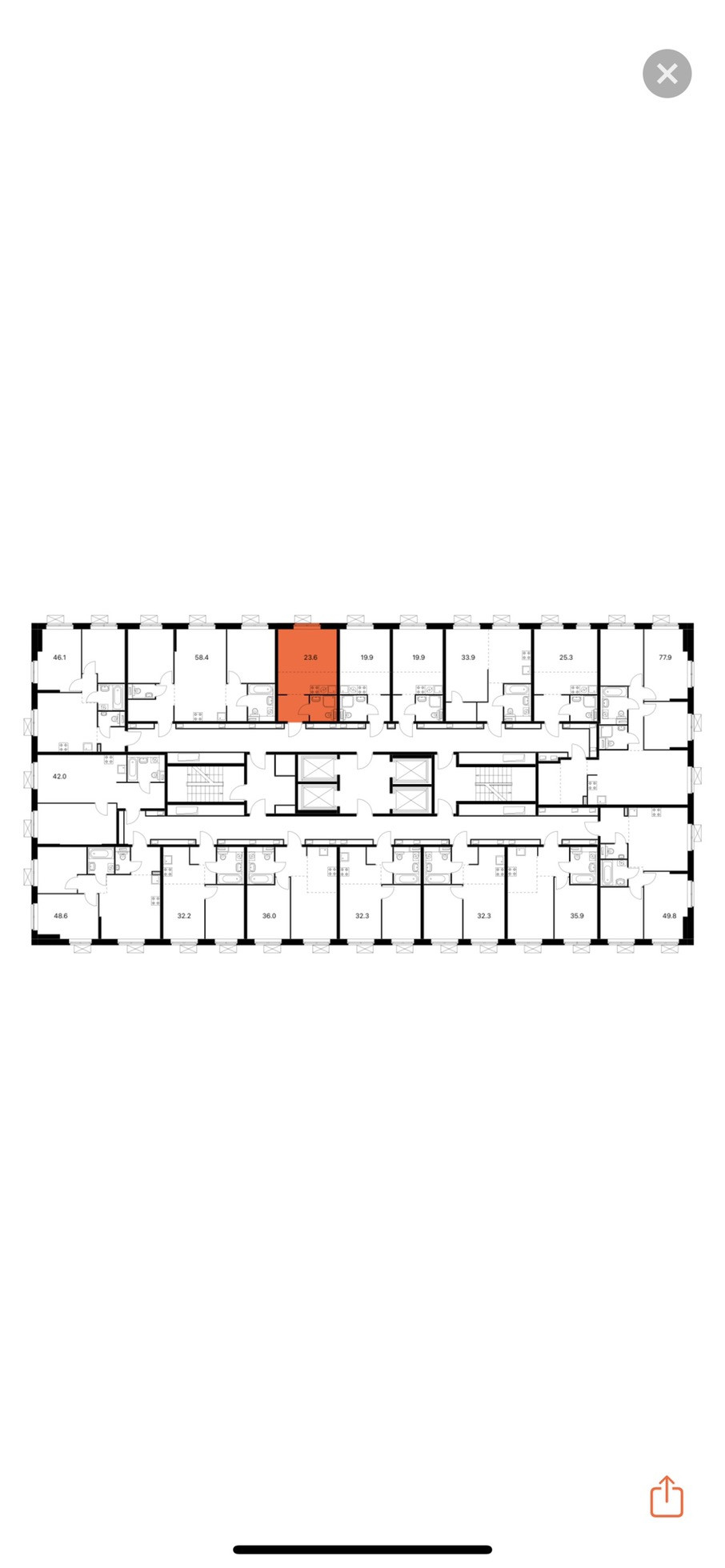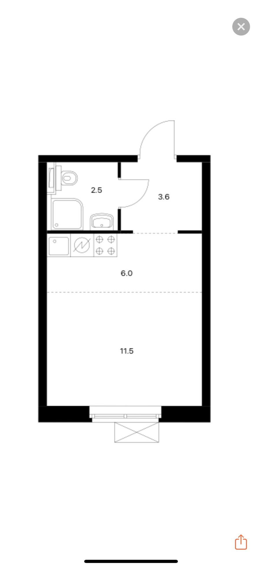 Общая площадь 23.6 м2