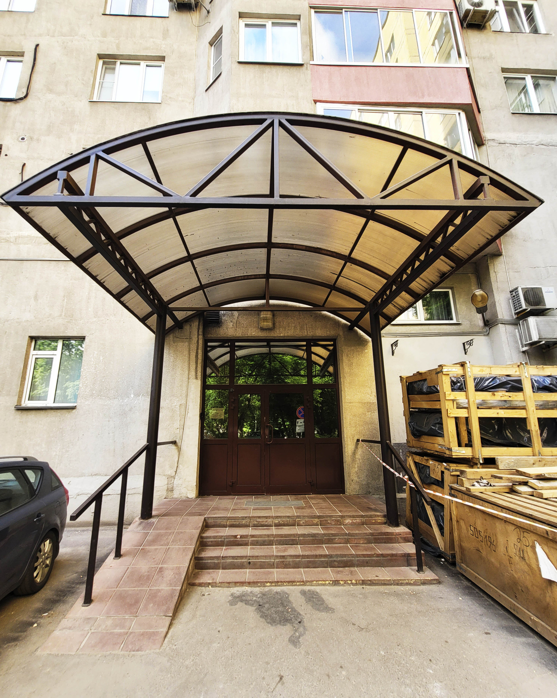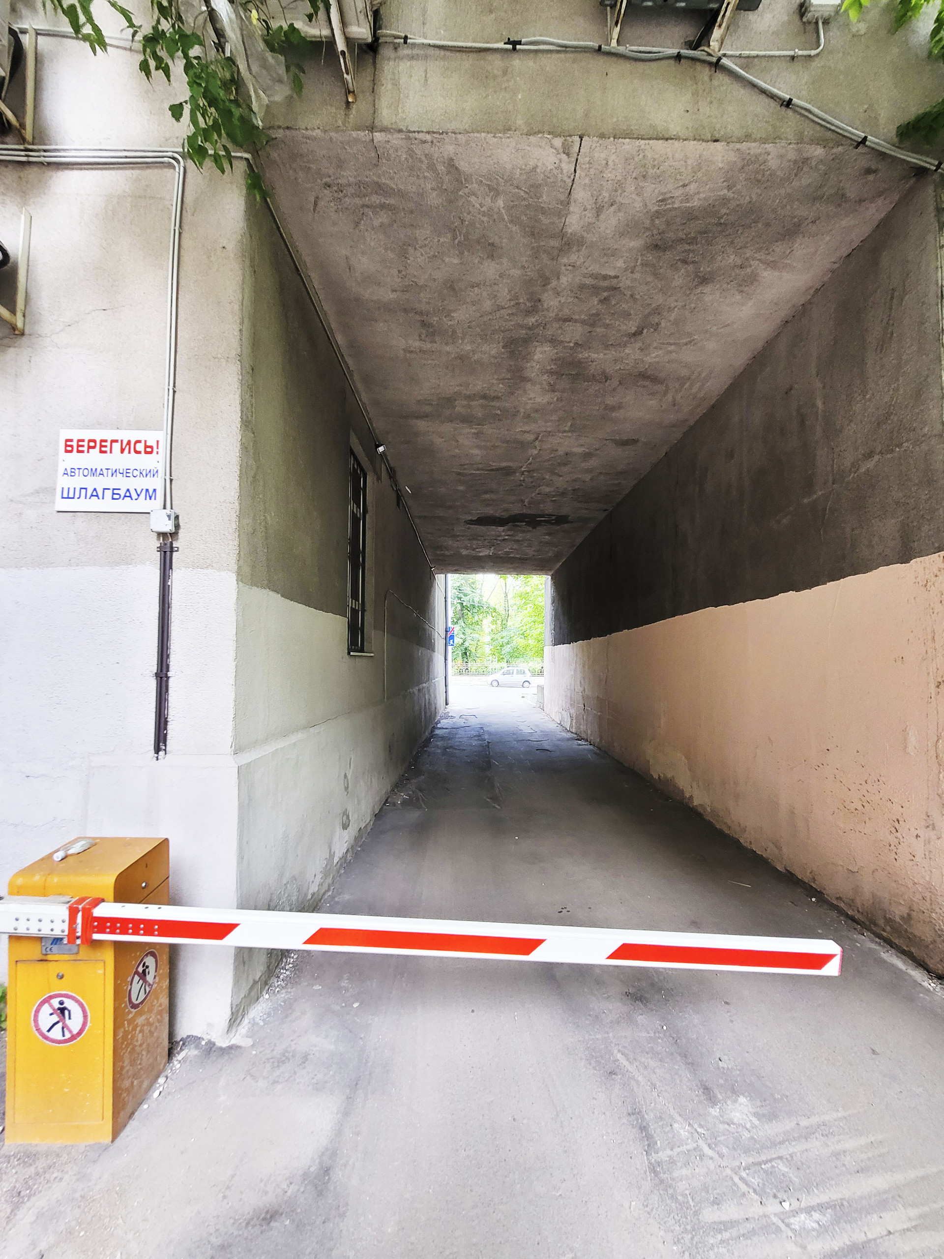 -  Въезд во двор закрыт шлагбаумом;