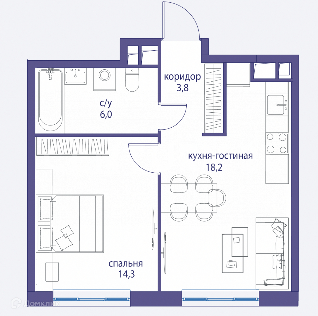 Квартира с ремонтом! Продается 1-комн. квартира в ЖК "ОСТРОВ" на 6-м этаже. Общая площадь 43.00 кв. м, из которых 14.00 кв. м жилая зона и 17.10 кв. м - кухонная зона, 1 совмещенный санузел. В жилой зоне 2 больших окна на одну сторону, хорошая инсоляция. Квартира с финишной премиальной отделкой, итальянскими кухнями, сантехникой и современной бытовой техникой. В квартире выделены мокрые зоны, установлены качественные двойные стеклопакеты, заведены инженерные коммуникации, есть счетчики. Квартира расположена в квартале 1, в корпусе 4 . В каждом подъезде запроектирован пассажирский и грузовой лифты. Окончание строительства -4 квартал 2023 года.
