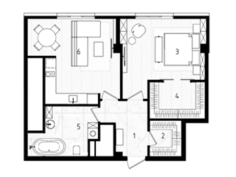 Апартаменты продаются без отделки, что позволяет вариативно изменять планировочное решение представленное на фотографии.