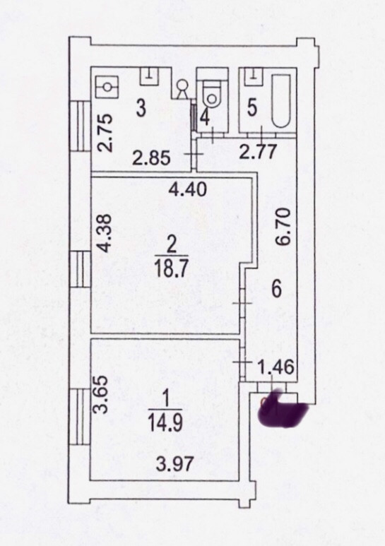 Общая площадь 55.1 м2