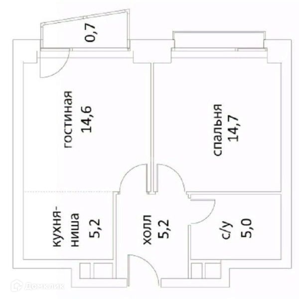 Функциональная планировка: просторная кухня- ниша 5.2м2, гостиная- 14.6м2, спальня - 14.7м2.