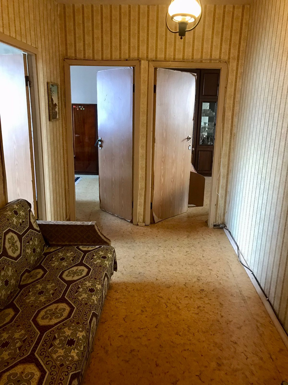 Общая площадь - 74 кВ. М , кухня - 10 кВ.м., комнаты изолированные - 19 кВ.м./ 14,5 кВ.м./11,3 кВ.м., санузел раздельный, балкон - лоджия в большой комнате. Перепланировок не было.