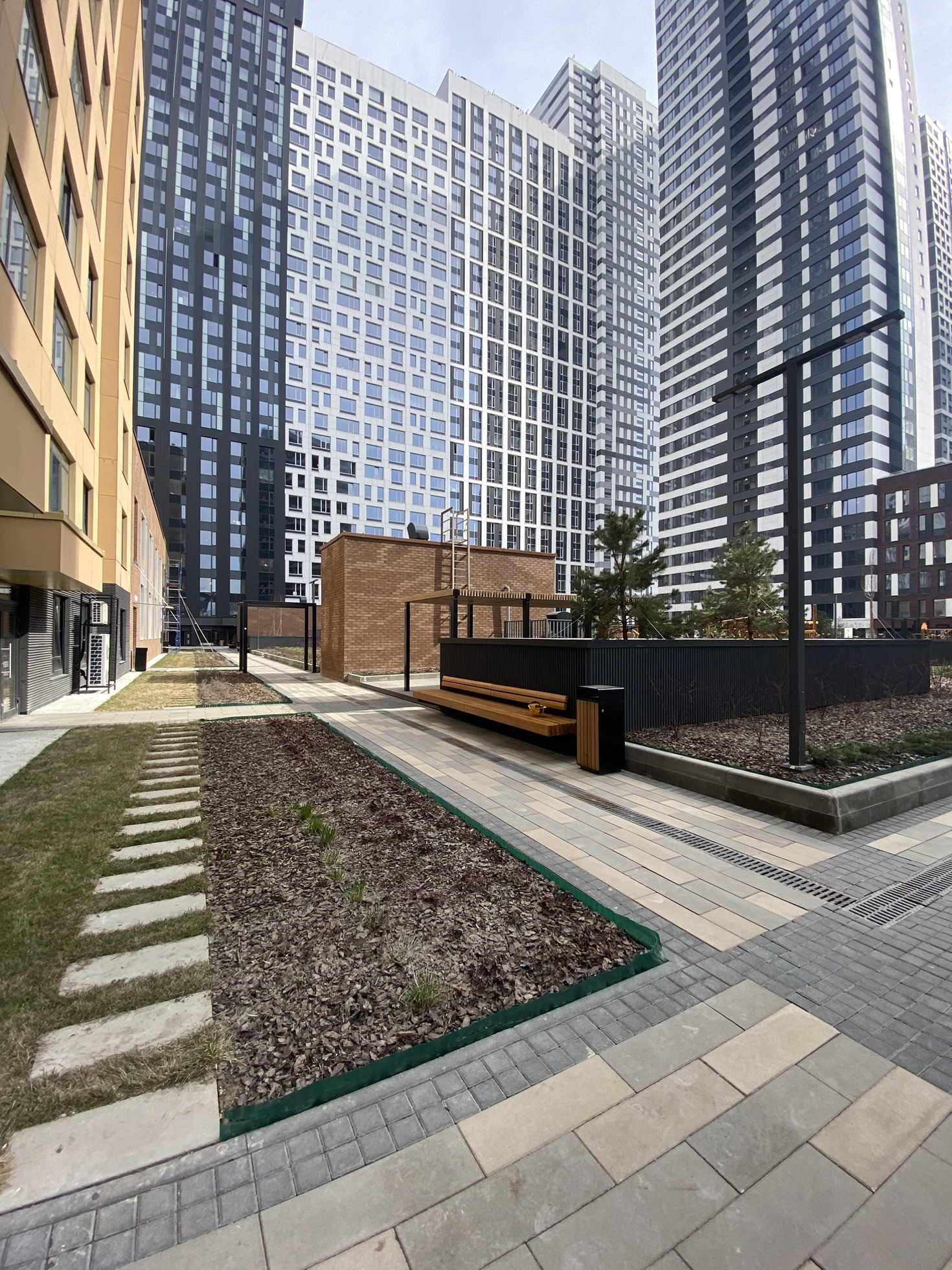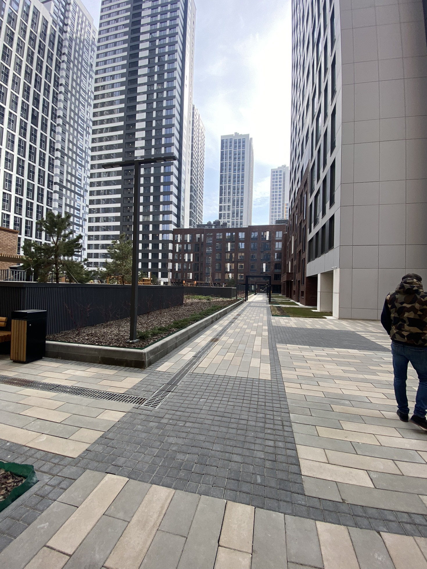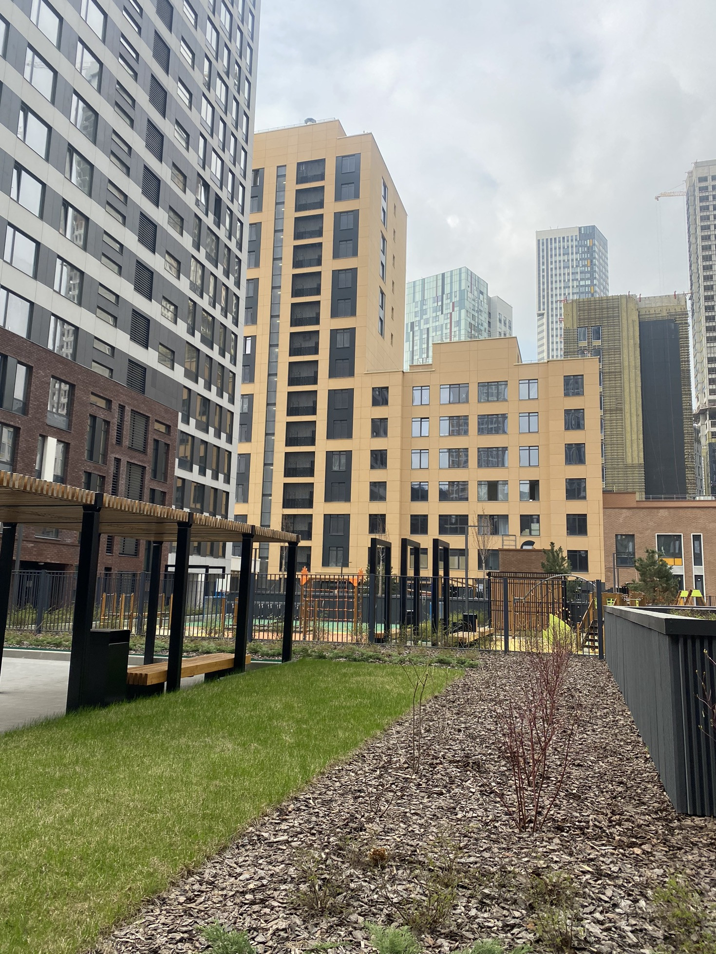 ЖК имеет огороженную, охраняемую территория, двор без машин, во дворах оборудованы детские и спортивные площадки, собственный прогулочный бульвар с магазинами, ресторанами и кафе.