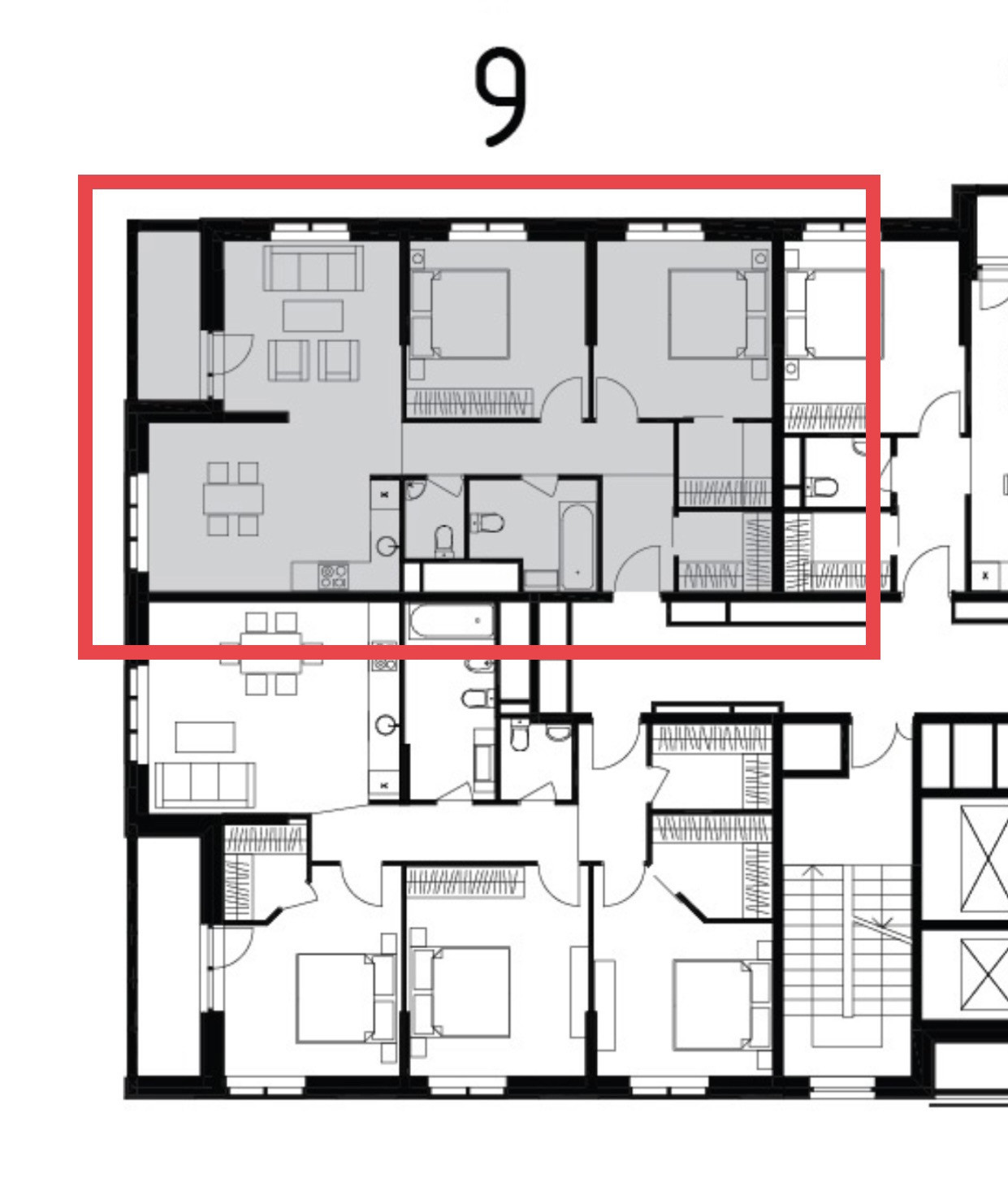“Headliner” (Хэдлайнер), общей площадью 78,2 кв. м, ( с учетом площади лоджии 82,7 кв.м.), расположена в 8 корпусе секция 8.1 на 4 этаже. Квартира без отделки.