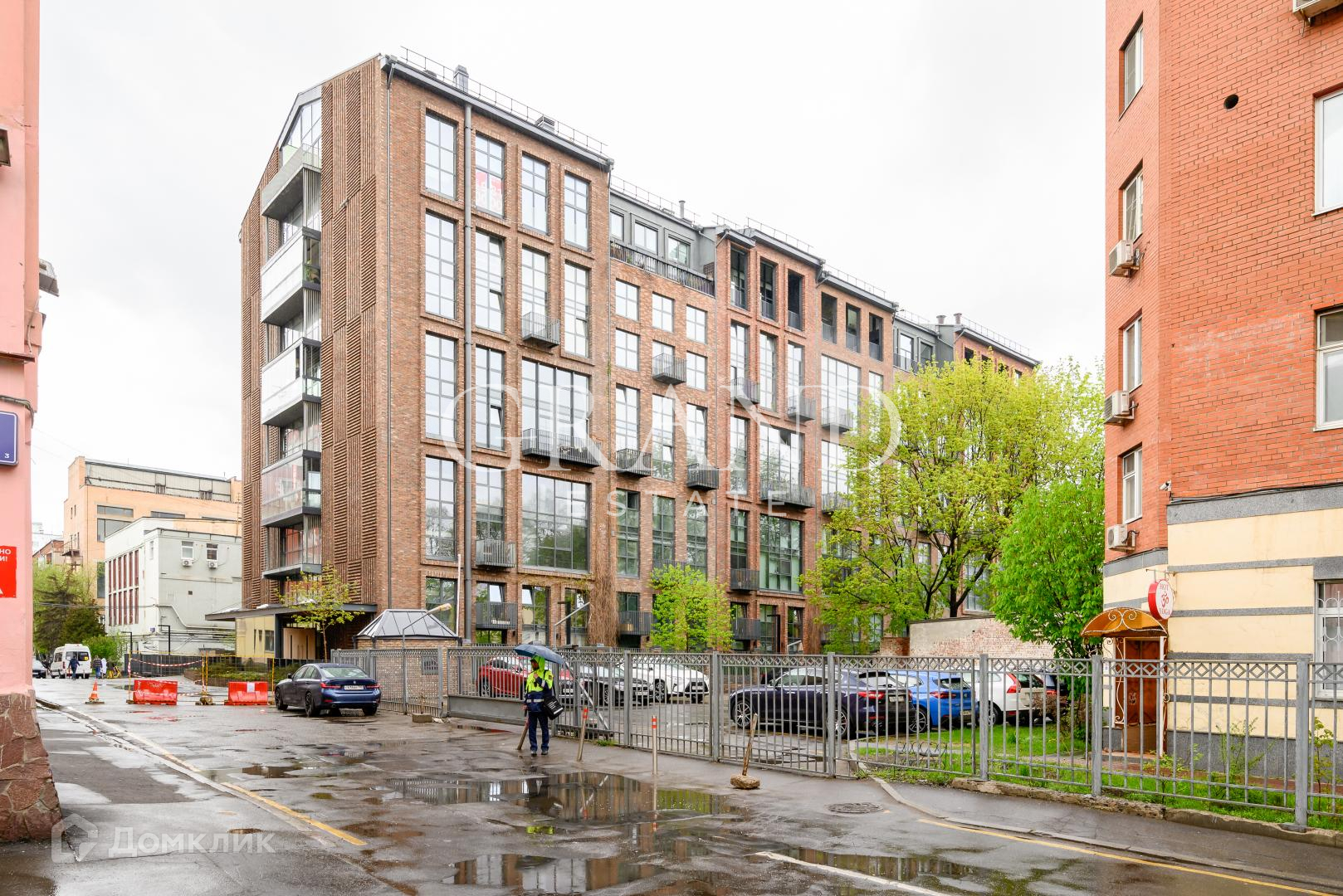 Закрытая территория комплекса, два блок поста с охранной, видеонаблюдение. Есть подземный паркинг.
