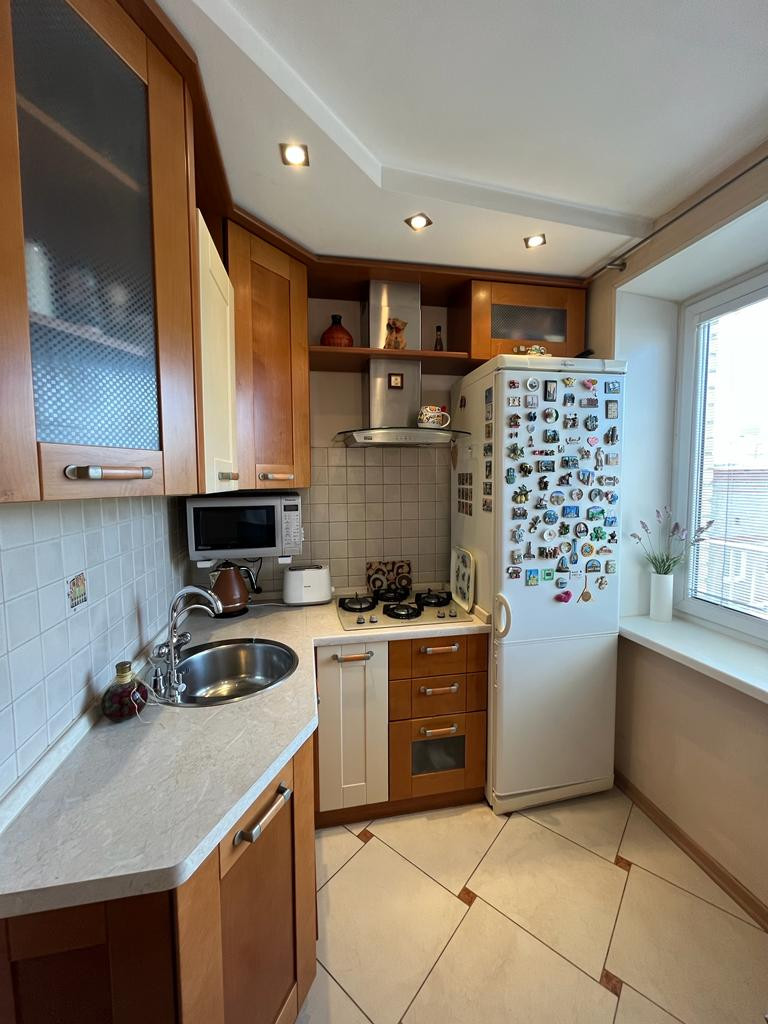 Квартира светлая , солнечная,  в прекрасном состоянии. Сделан качественный ремонт с использованием дорогих метериалов, заменены все коммуникации,застеклен балкон, есть гардеробная. Гостиная полностью мебелирована.Кухня- итальянский массив вишни.