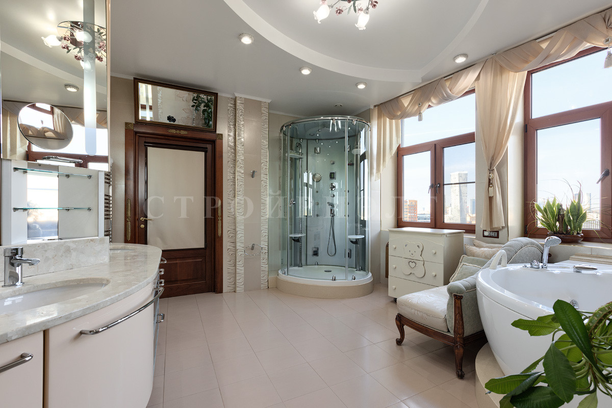 В квартире: кондиционирование, интернет, спутниковое телевидение, теплые полы, необходимая техника, европейская сантехника, двери, фурнитура, бытовая техника, мебель, паркет.