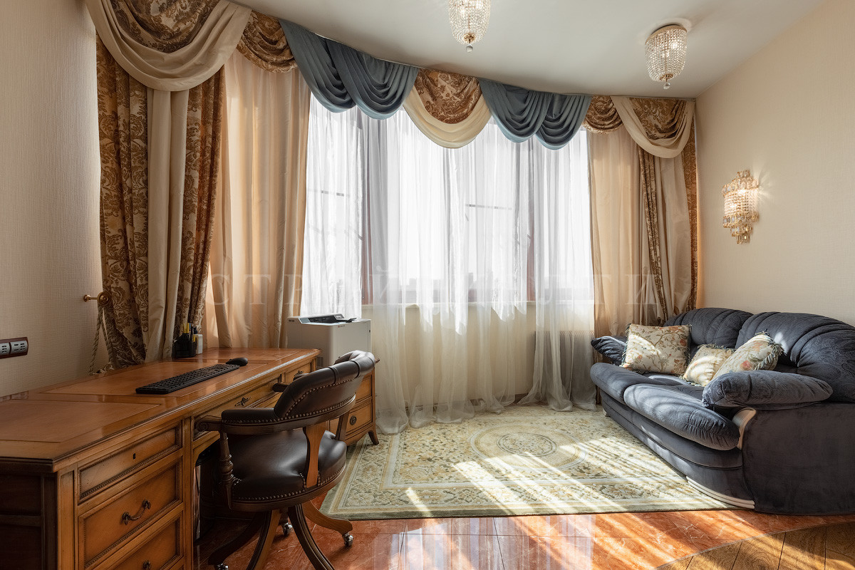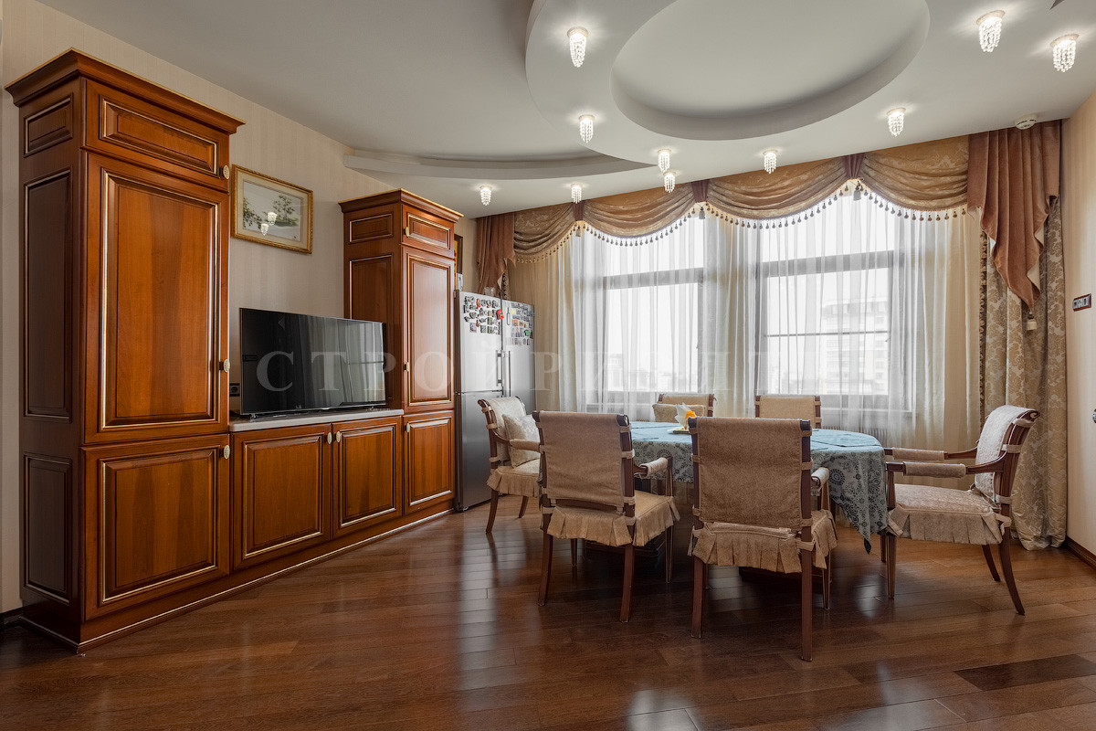 Просторная многокомнатная видовая семейная квартира в ЖК "Белый Лебедь" с удобным расположением по сторонам света, имеющая потрясающие виды на МГУ, парк при посольстве Китая, Поклонную гору, Москву - реку и панораму Москвы с небоскребами Сити, окруженная парками и скверами.