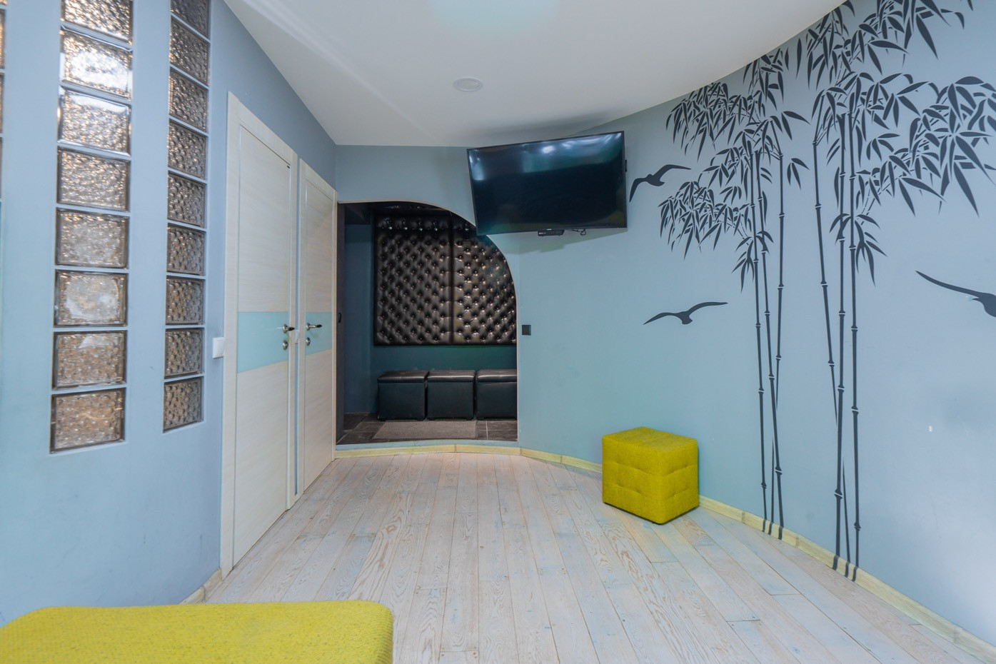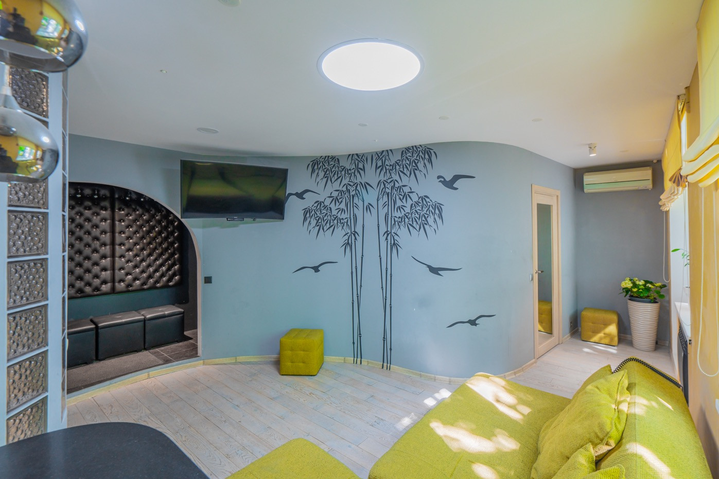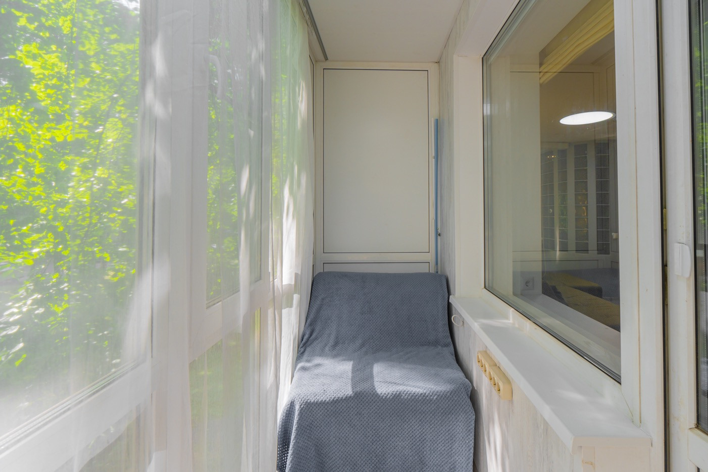 - Просторная лоджия с панорамными окнами, с теплым полом, с зоной для отдыха;