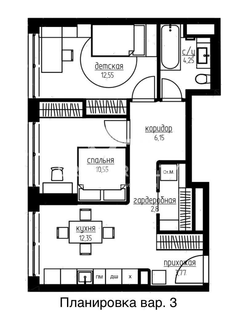 Площадь кухни 12.06 м2