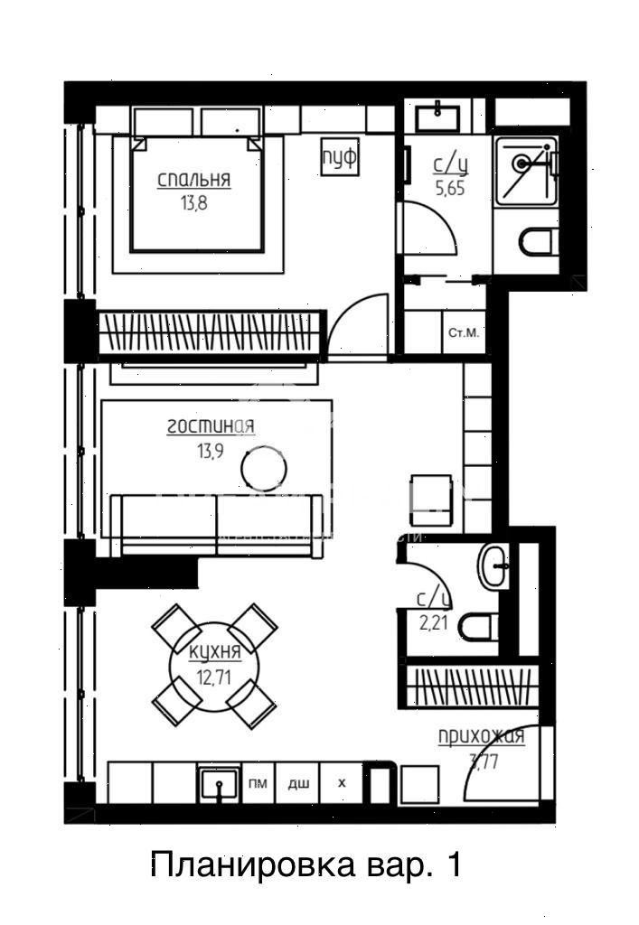 Общая площадь 54.91 м2